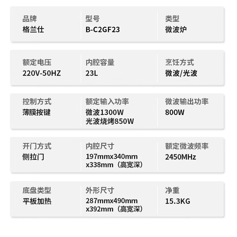 • 商品名称:格兰仕家用型微波炉大容量涂层内胆便捷操作平板加热微波炉轻音降噪 B-C2GF23 B-C2GF23/个