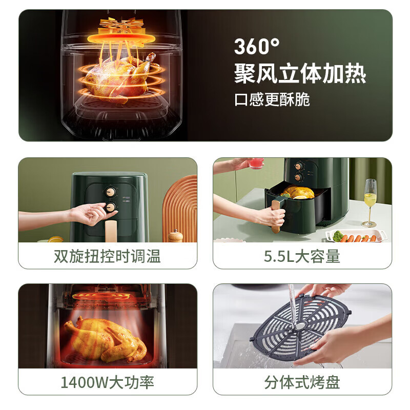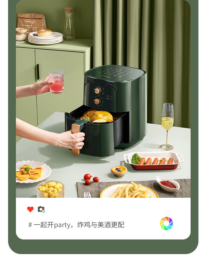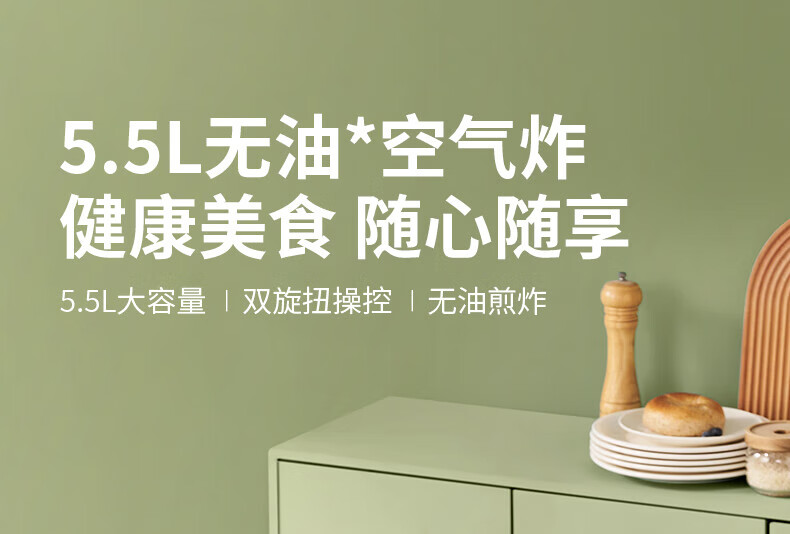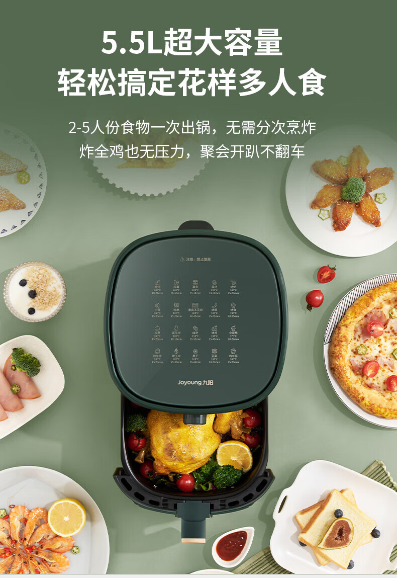 家用电器  > 厨房小电  > 空气炸锅  >  九阳/Joyoung  >  九阳(Joyoung) 家用多功能 空气炸锅 KL55-VF509 不沾易清洗 准确定时 低脂 无油煎炸 5.5L大容量 KL55-VF509/个