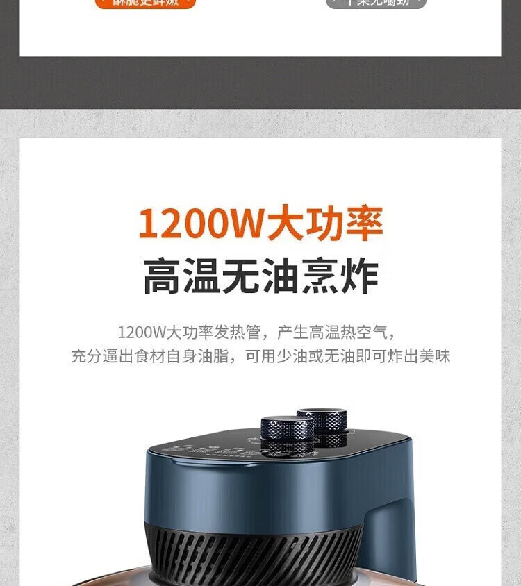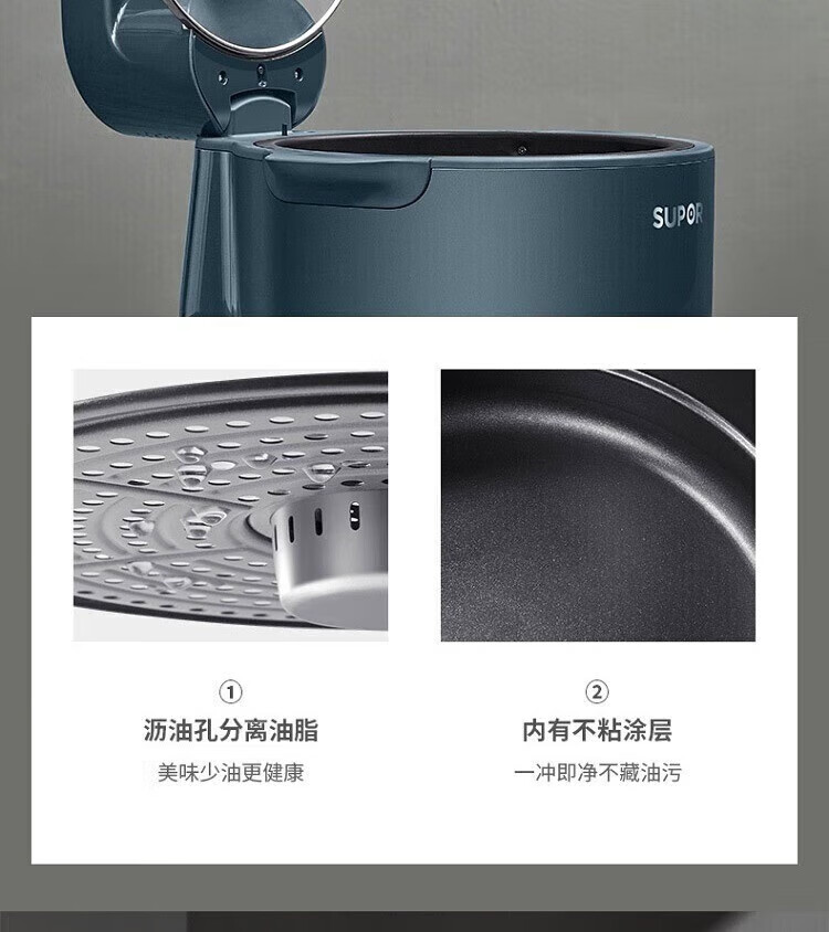 • 商品名称:苏泊尔空气炸锅 5L大容量可视电炸锅 蒸汽嫩炸薯条机冷热双风循环双旋扭控制轻松炸整鸡 KJ50DQ75 KJ50DQ75/个