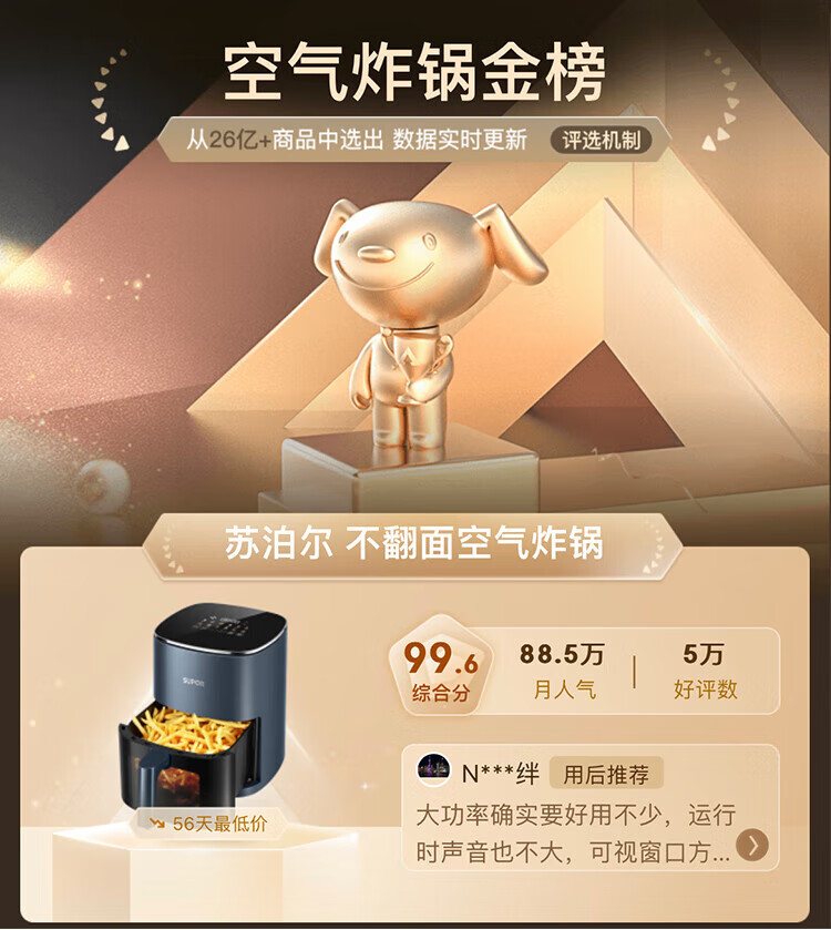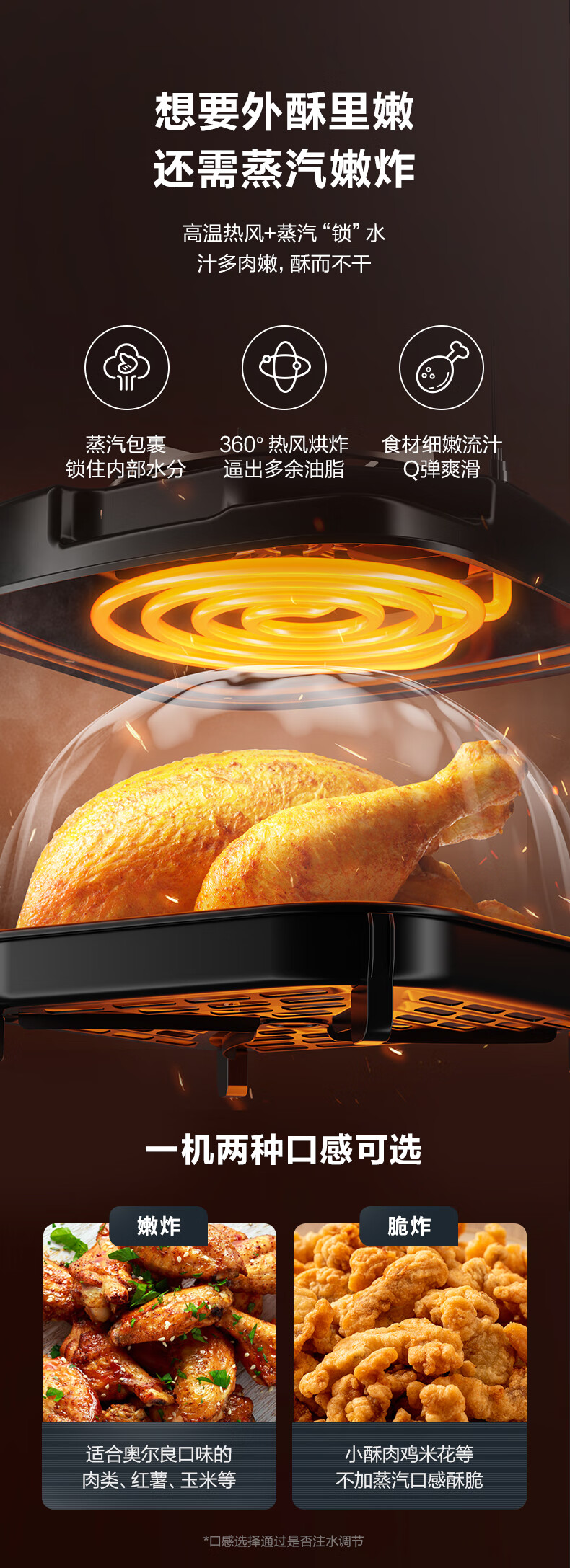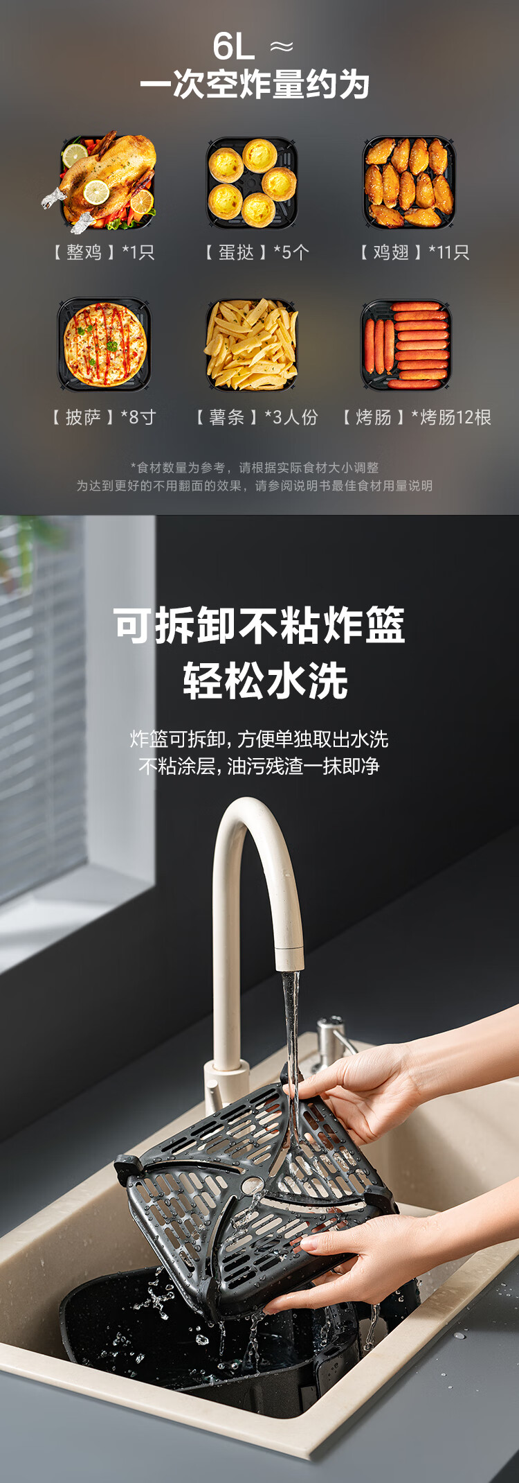 • 商品名称:苏泊尔(SUPOR)空气炸锅不用翻面 家用全自动 6L大容量 可视 蒸汽嫩炸 智能多功能电炸锅KD60D830A KD60D830A/台