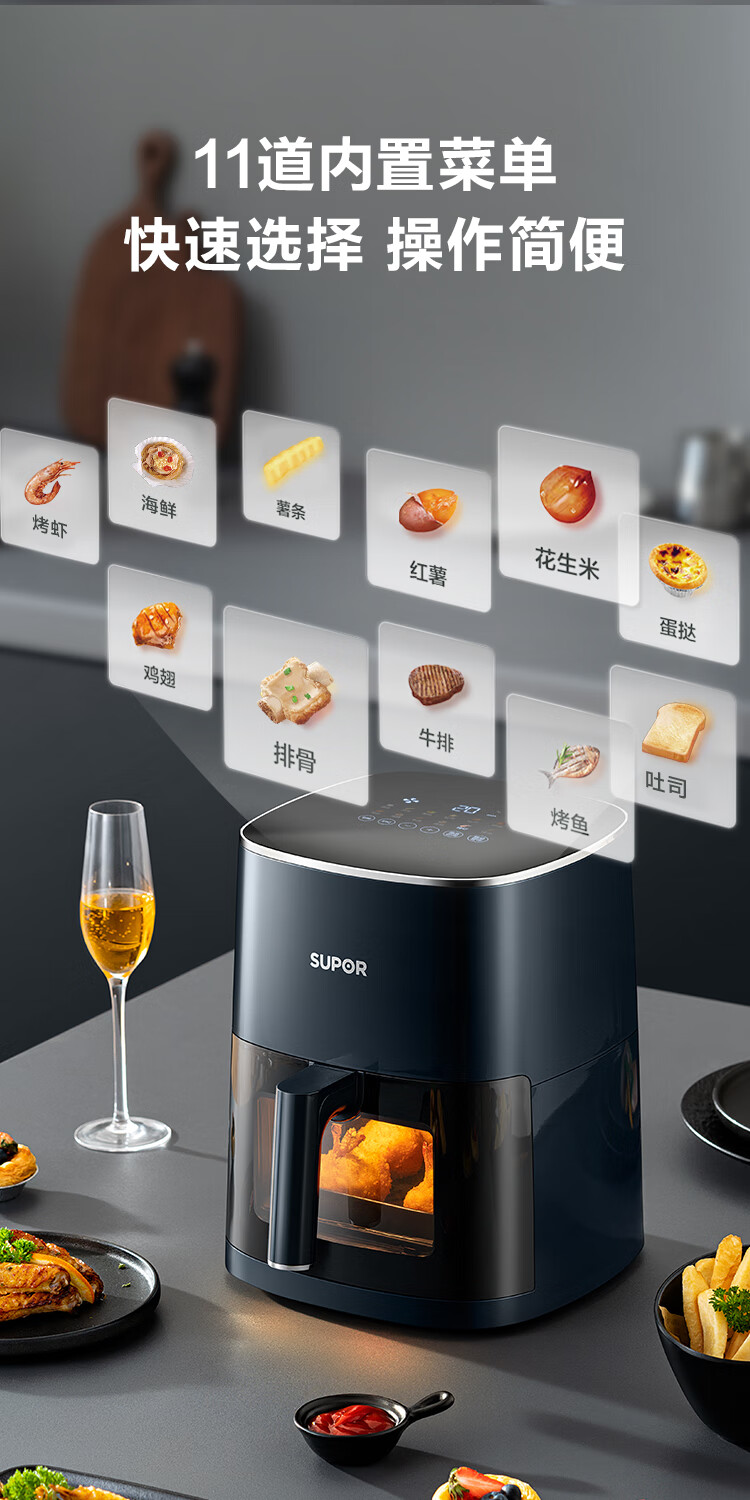 家用电器  > 厨房小电  > 空气炸锅  >  苏泊尔/SUPOR  >  苏泊尔(SUPOR)空气炸锅不用翻面 家用全自动 6L大容量 可视 蒸汽嫩炸 智能多功能电炸锅KD60D830A KD60D830A/台