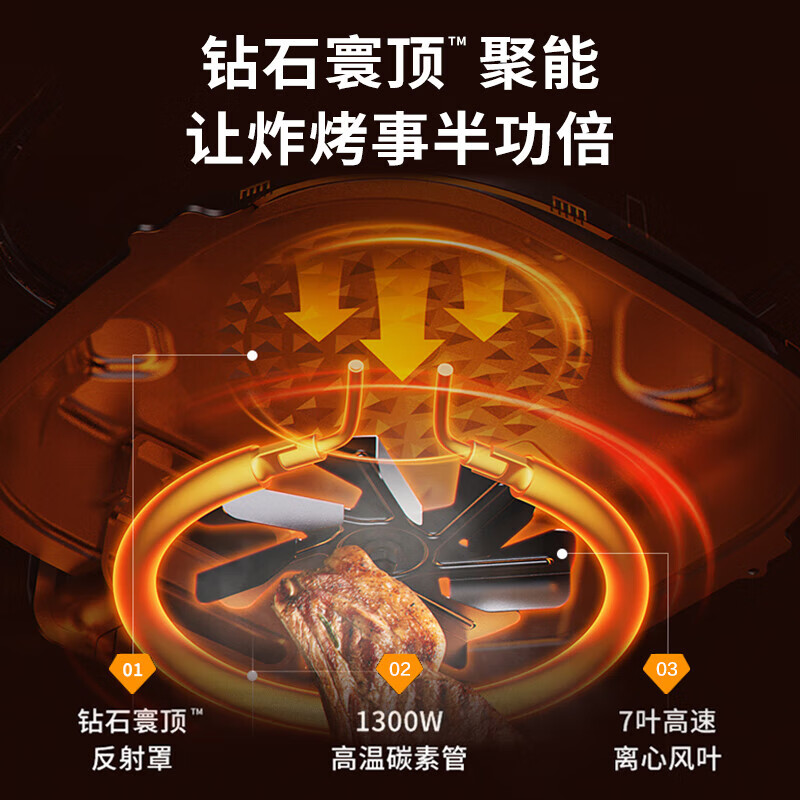 • 商品名称:九阳(Joyoung)不用翻面 聚能寰顶 可视远红外烘烤空气炸锅 家用5L容量 薯条机电炸锅 KL50-V552 KL50-V552/台