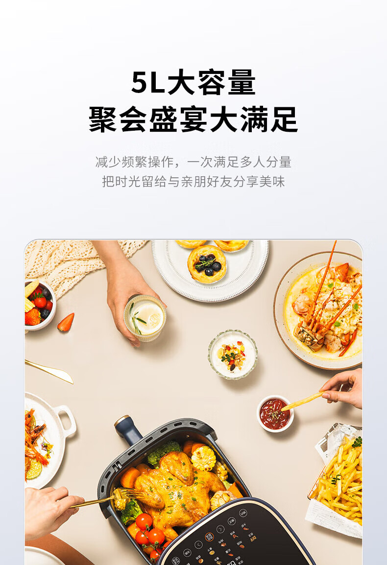 家用电器  > 厨房小电  > 空气炸锅  >  九阳/Joyoung  >  九阳(Joyoung)不用翻面 聚能寰顶 可视远红外烘烤空气炸锅 家用5L容量 薯条机电炸锅 KL50-V552 KL50-V552/台