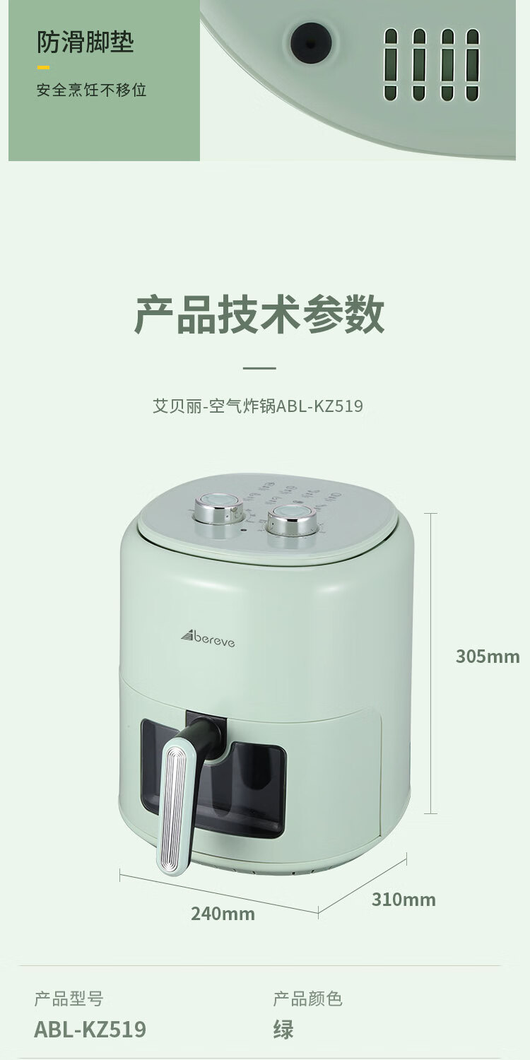 • 商品名称:艾贝丽可视空气炸锅ABL-KZ519 ABL-KZ519/台