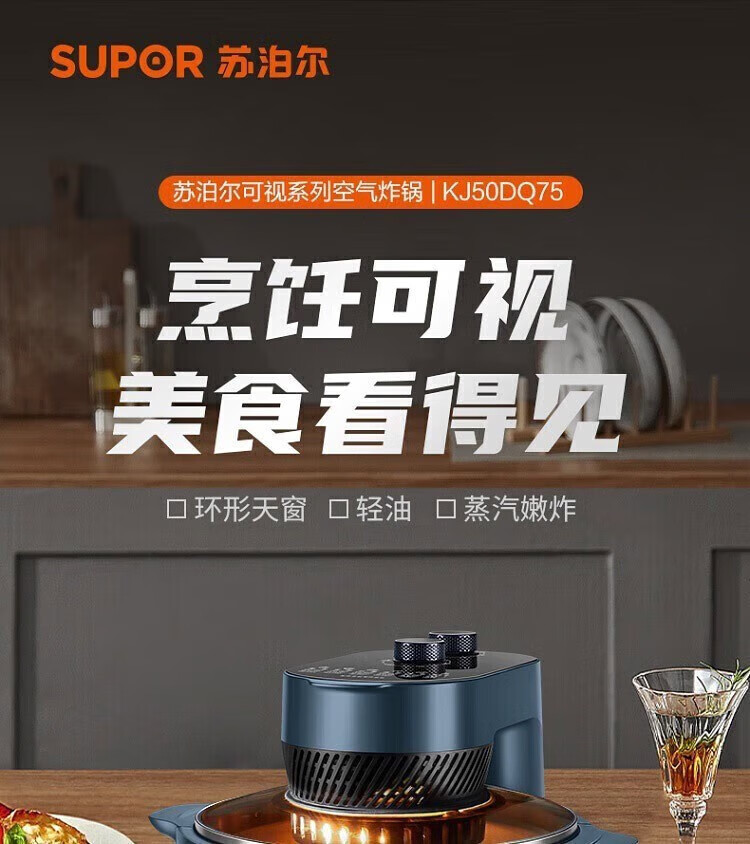 商品名称: 苏泊尔空气炸锅 5L大容量可视电炸锅 蒸汽嫩炸薯条机冷热双风循环双旋扭控制轻松炸整鸡 KJ50DQ75 KJ50DQ75/个