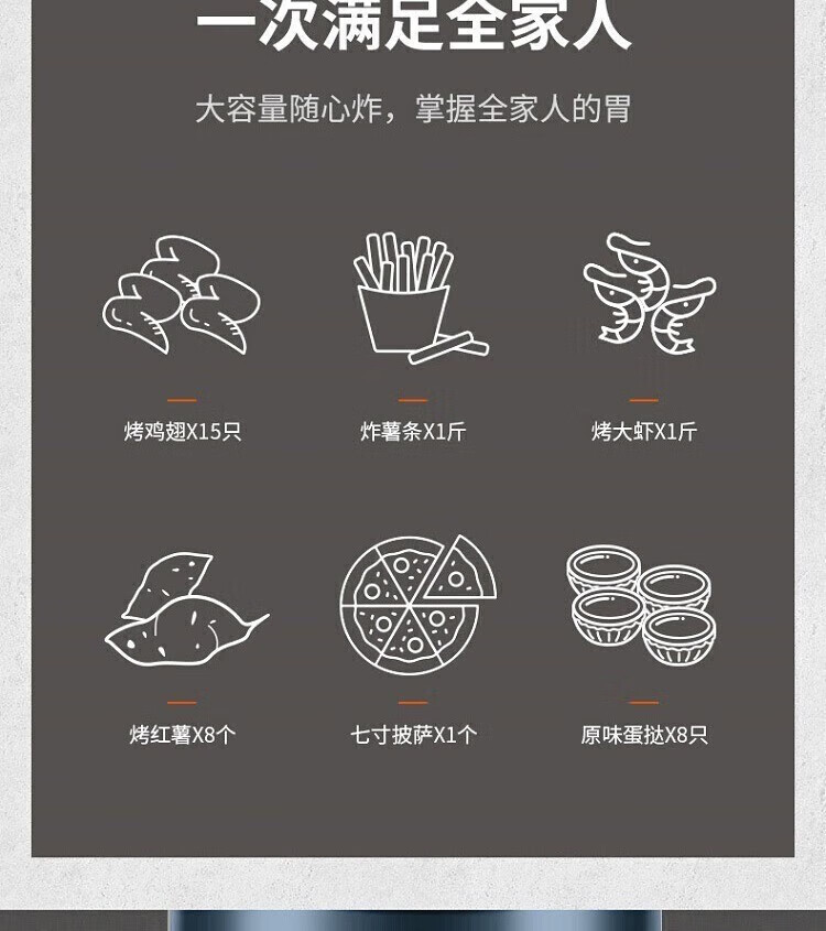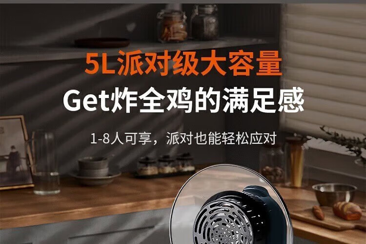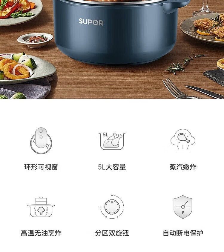• 商品名称:苏泊尔空气炸锅 5L大容量可视电炸锅 蒸汽嫩炸薯条机冷热双风循环双旋扭控制轻松炸整鸡 KJ50DQ75 KJ50DQ75/个