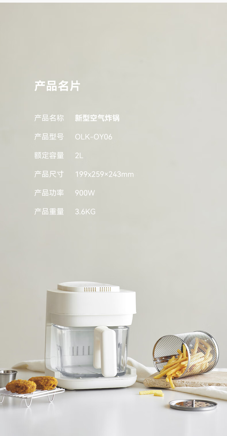 • 商品名称:olayks立时琉璃匣空气炸锅玻璃小型家用无涂层透明可视化蒸汽嫩炸多功能智能电炸锅免翻面迷你烹饪机 OLK-OY06/台