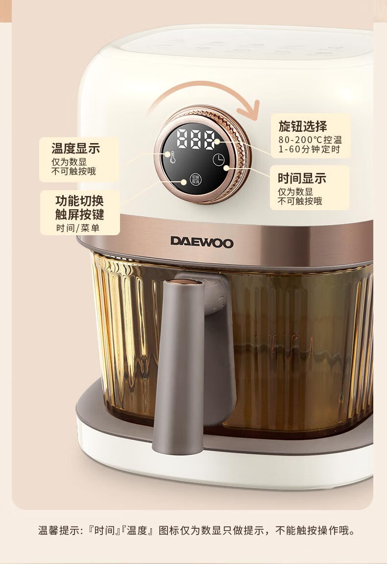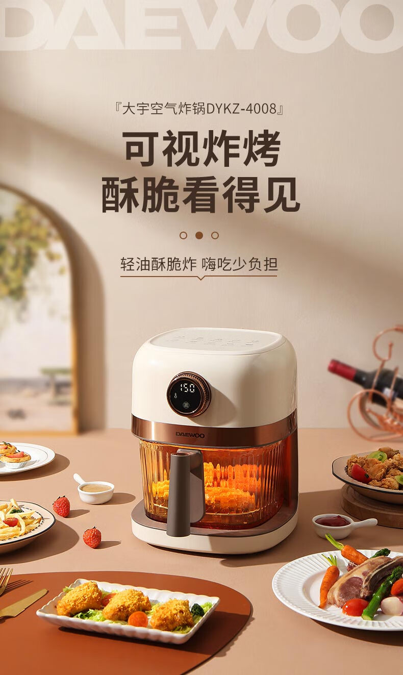 家用电器  > 厨房小电  > 空气炸锅  >  大宇/DAEWOO  >  大宇(DAEWOO)家用电炸锅多功能可视窗口4L容量空气炸锅 DYKZ-4008黑白颜色随机 DYKZ-4008/个