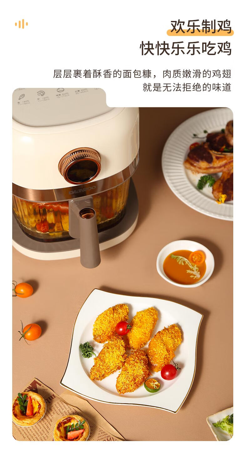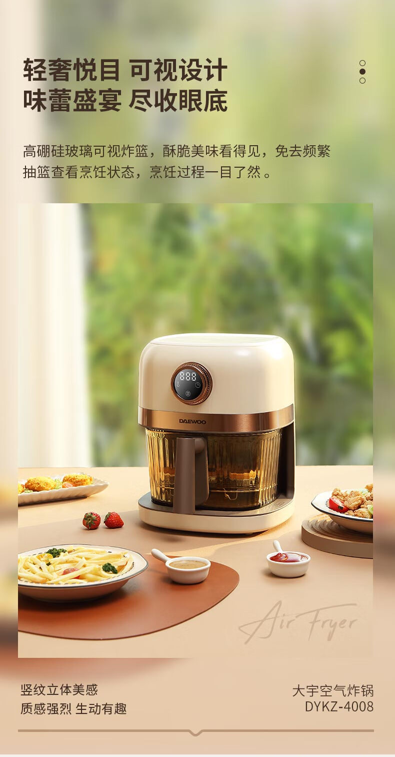 • 商品名称:大宇(DAEWOO)家用电炸锅多功能可视窗口4L容量空气炸锅 DYKZ-4008黑白颜色随机 DYKZ-4008/个