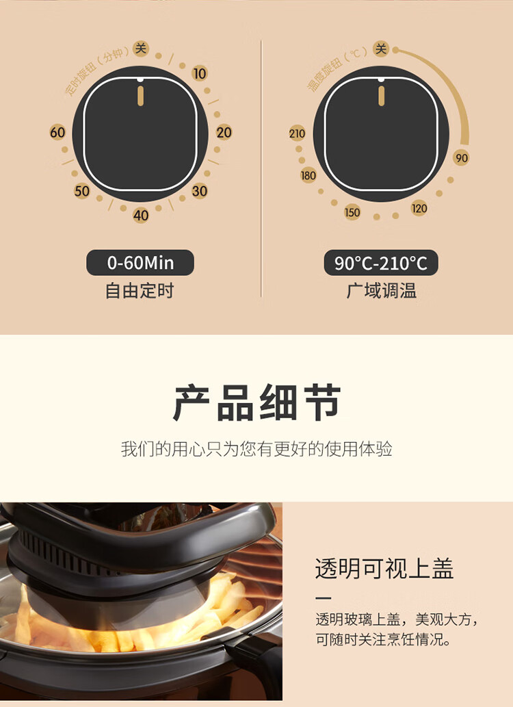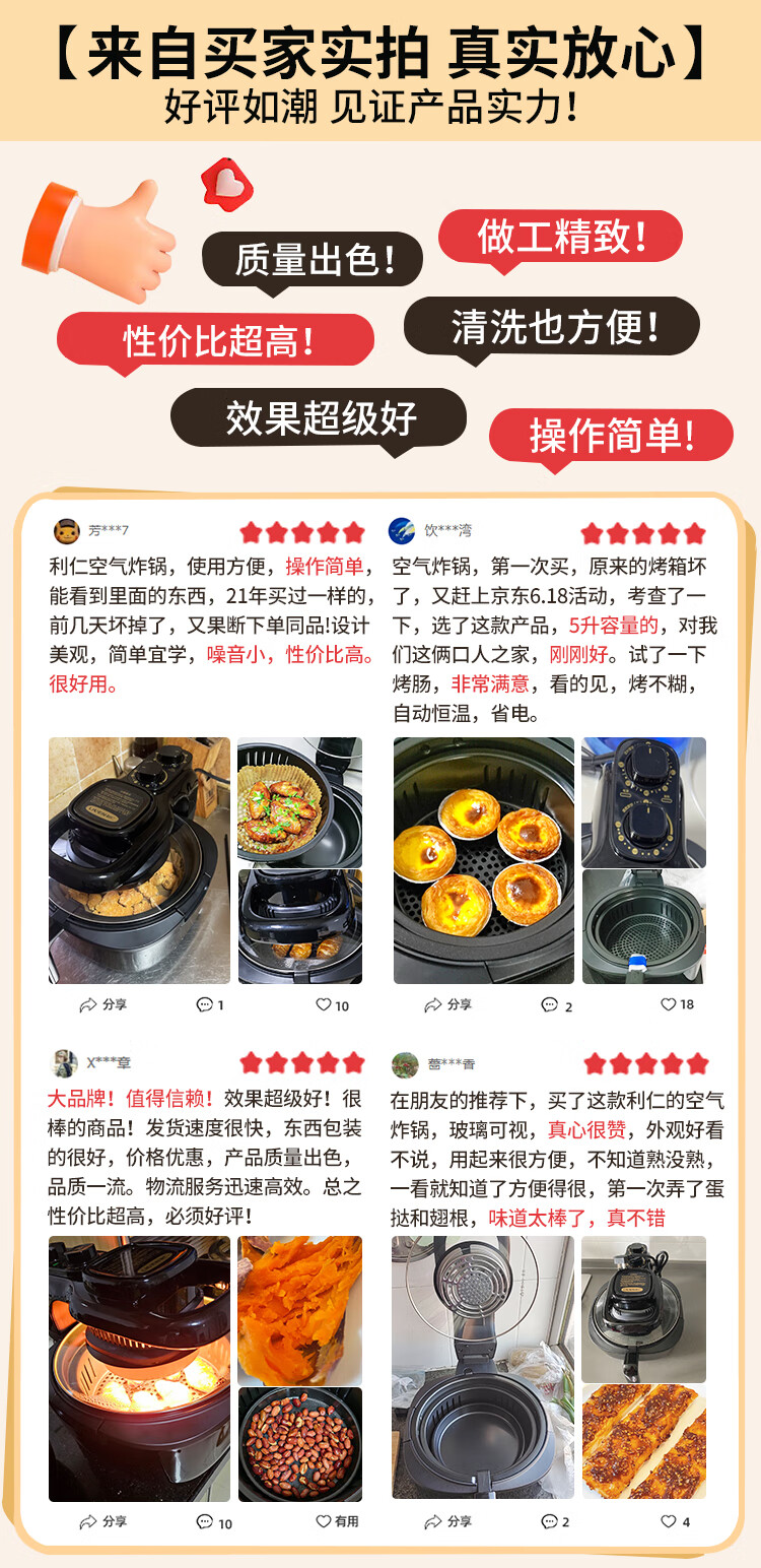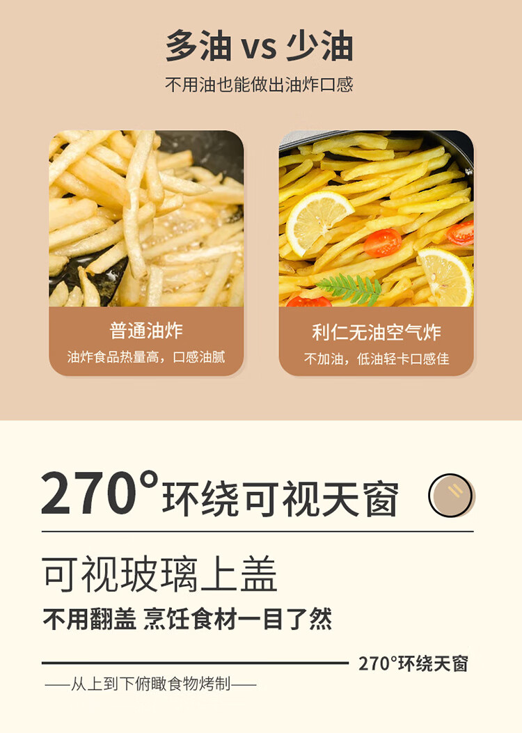 商品名称: 利仁(Liven)空气炸锅可视家用5升大容量无油电炸锅蒸汽炸锅 多功能空气炸锅炸烤一体烤箱薯条机KZ-J5000B KZ-J5000B/台