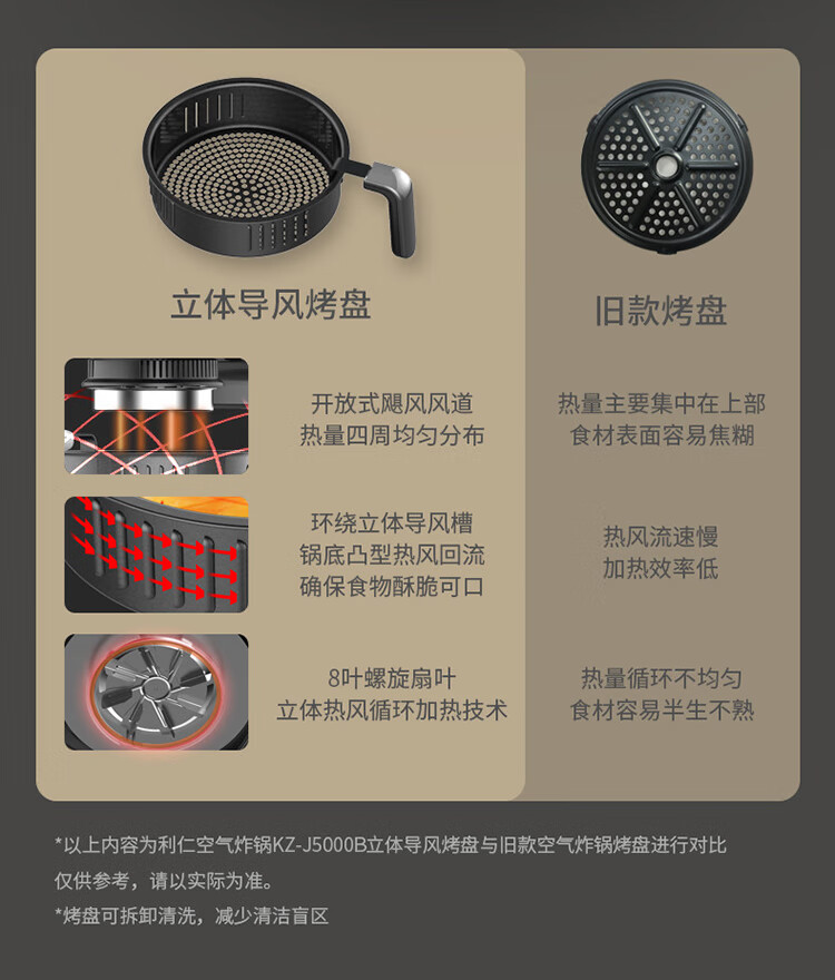 利仁(Liven)空气炸锅可视家用5升大容量无油电炸锅蒸汽炸锅 多功能空气炸锅炸烤一体烤箱薯条机KZ-J5000B KZ-J5000B/台