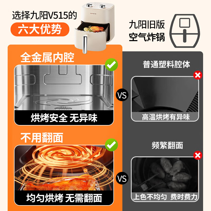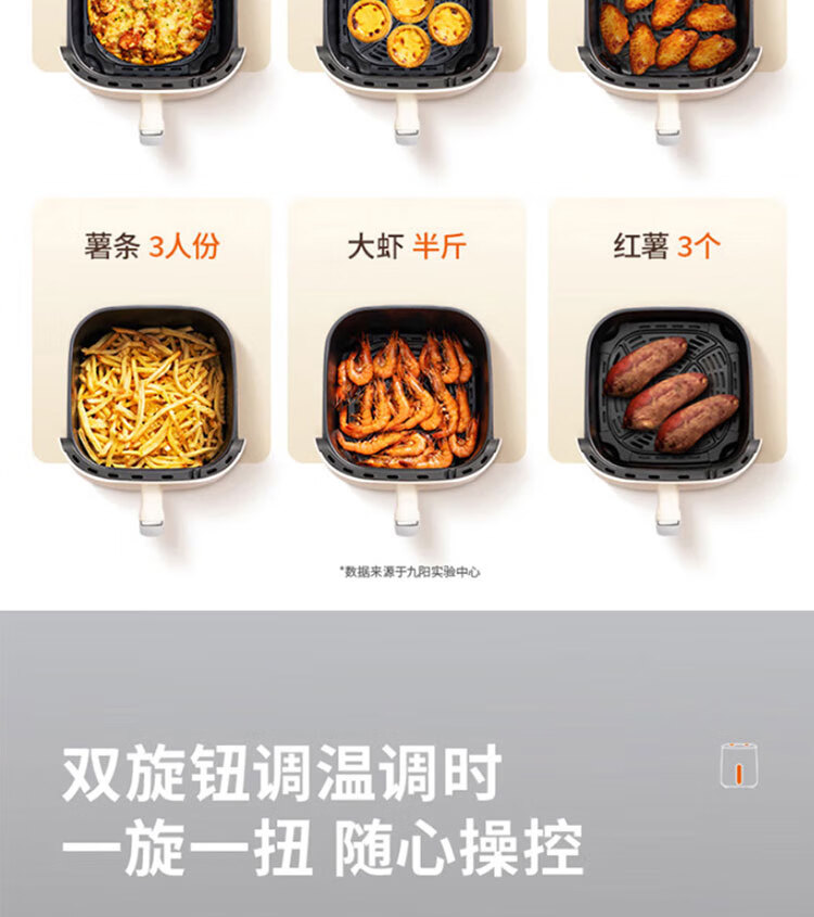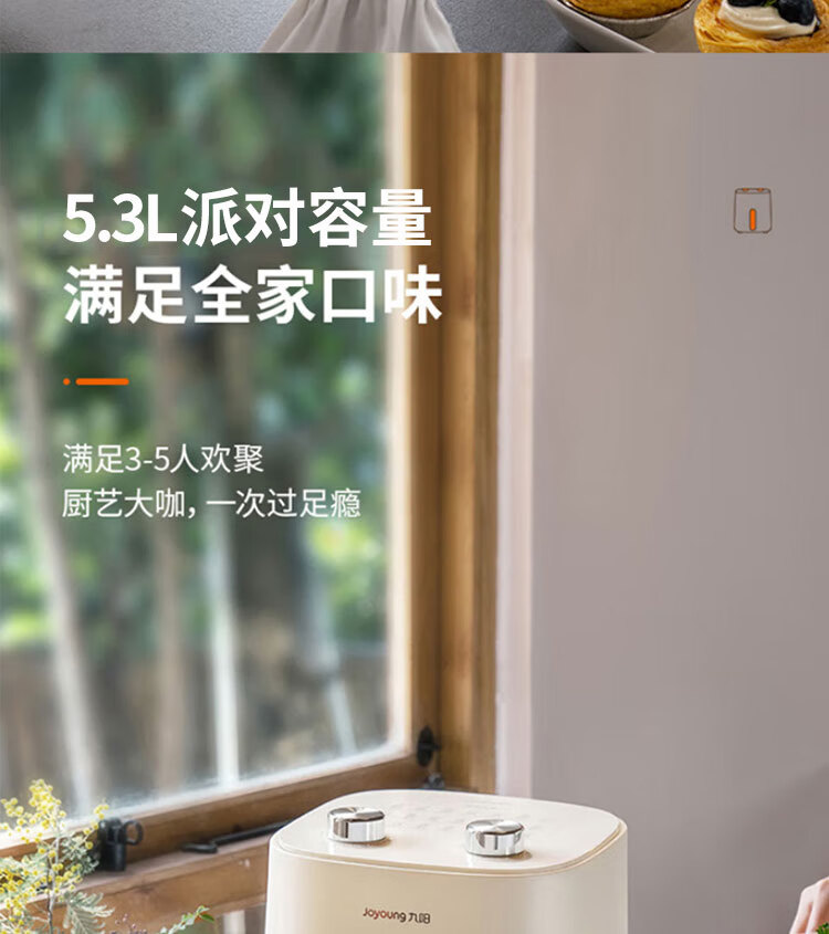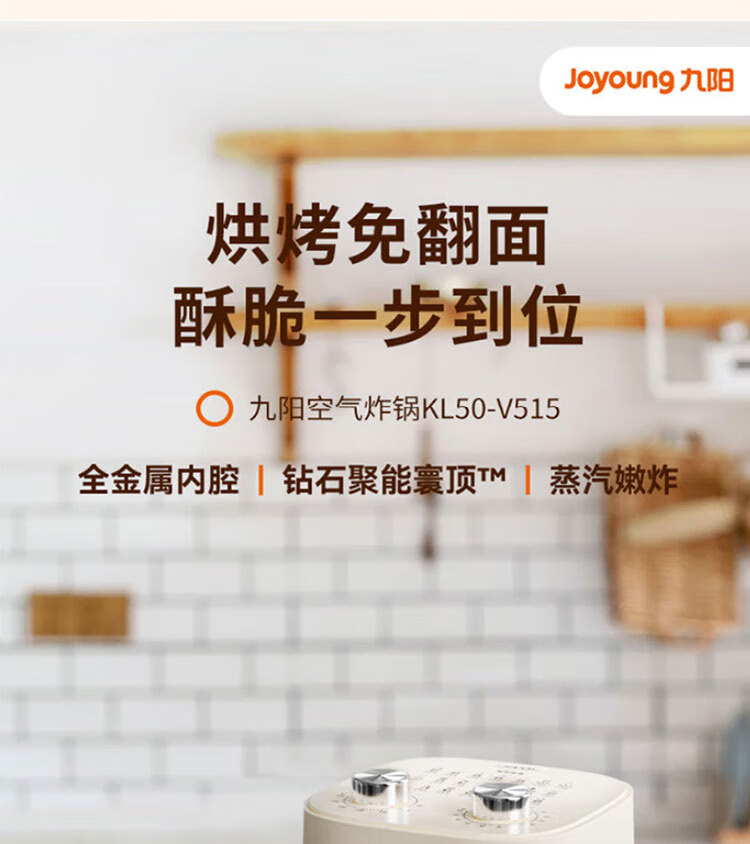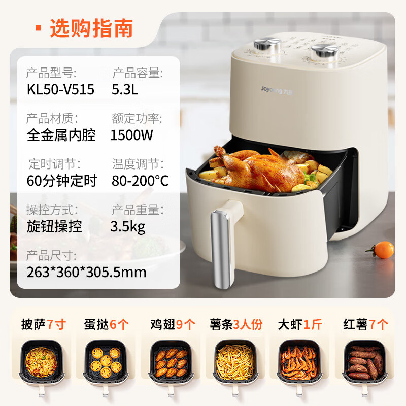 家用电器  > 厨房小电  > 空气炸锅  >  九阳/Joyoung  >  九阳(Joyoung)家用立体不用反面薯条机调温调时5.3L不沾易清洗空气炸锅KL50-V515 KL50-V515/台