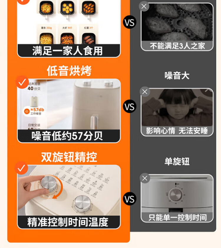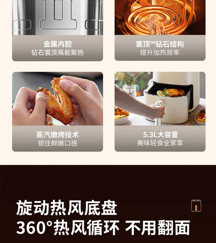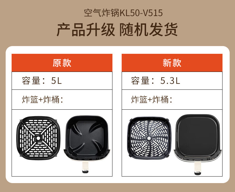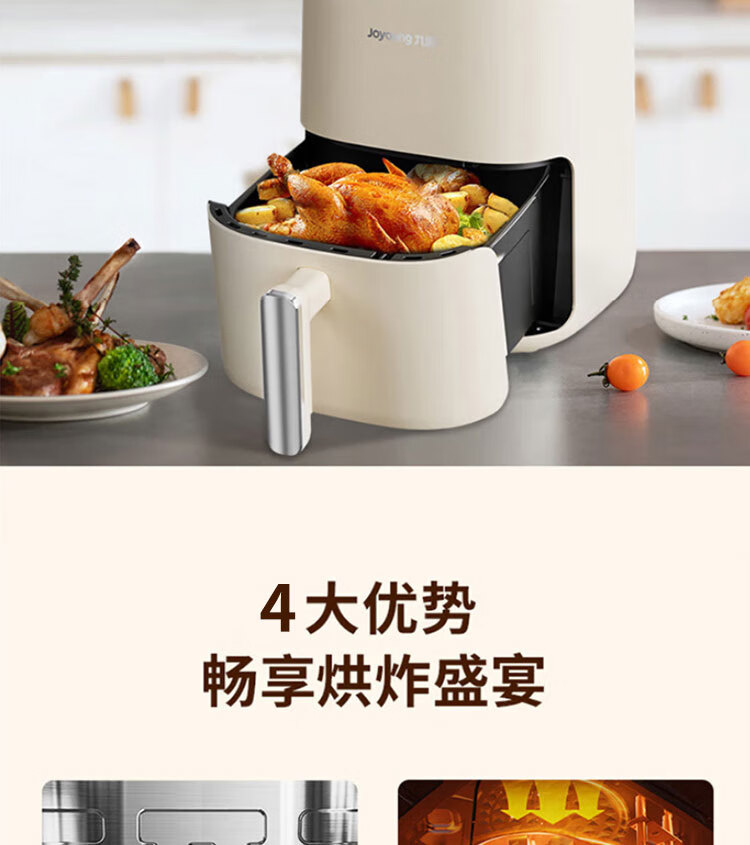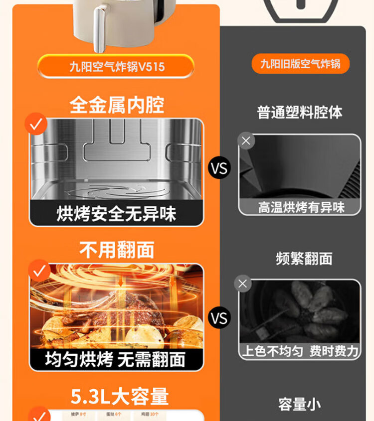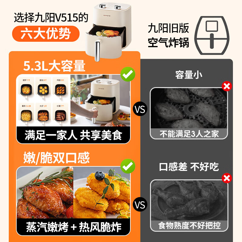 家用电器  > 厨房小电  > 空气炸锅  >  九阳/Joyoung  >  九阳(Joyoung)家用立体不用反面薯条机调温调时5.3L不沾易清洗空气炸锅KL50-V515 KL50-V515/台