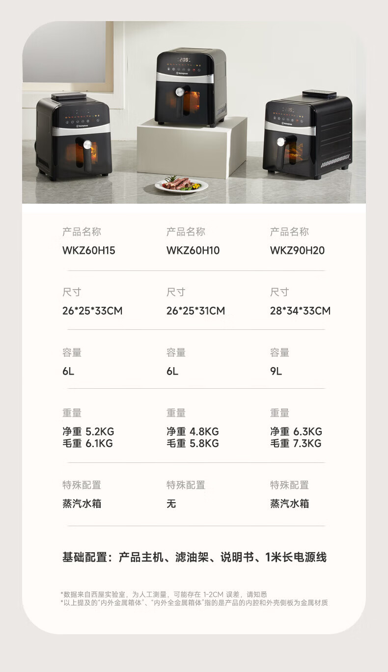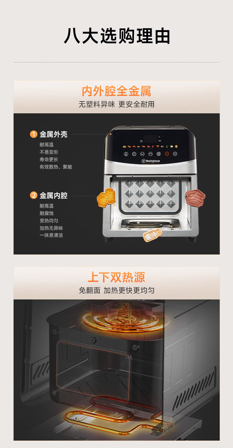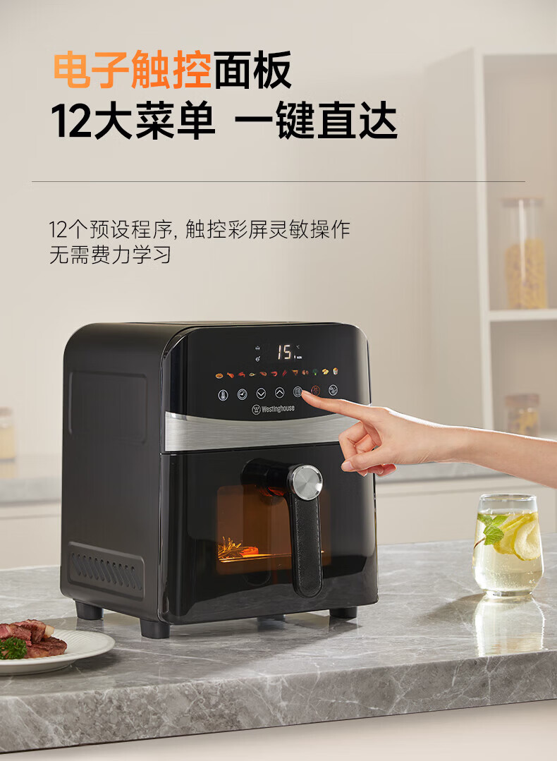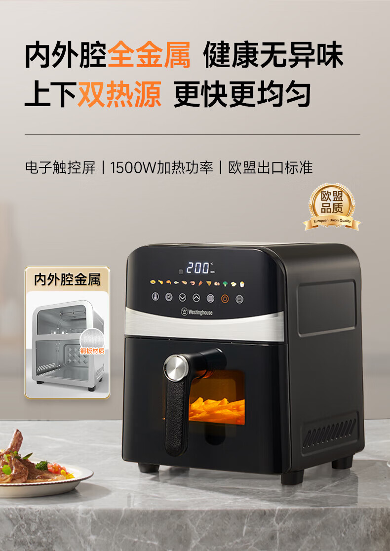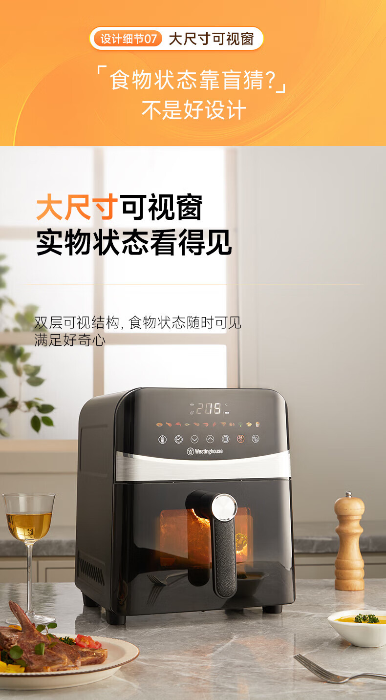 • 商品名称:西屋(Westinghouse)可视化空气炸锅6升大容量金属内腔体多功能烤箱免翻面炸锅 WKZ60H10 WKZ60H10/台