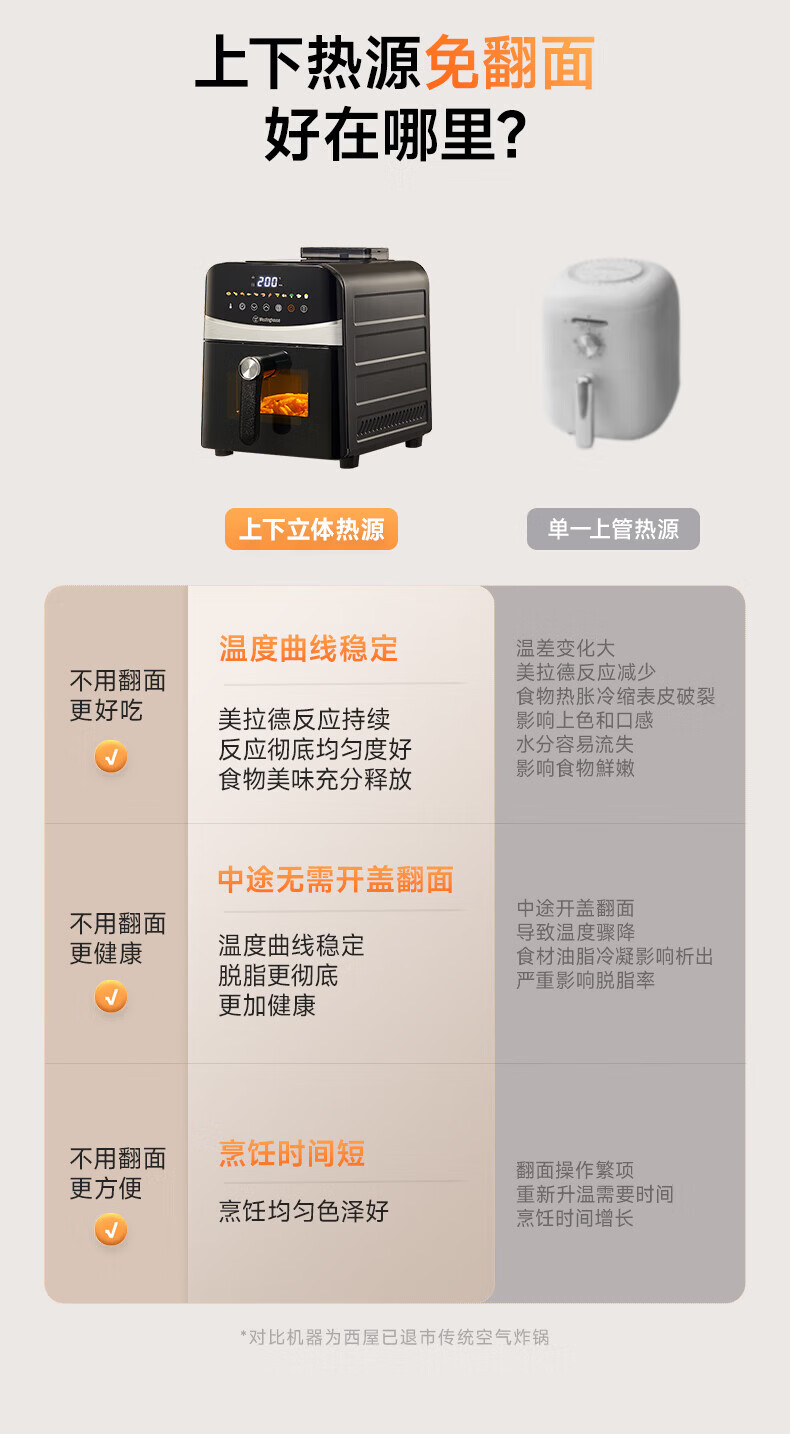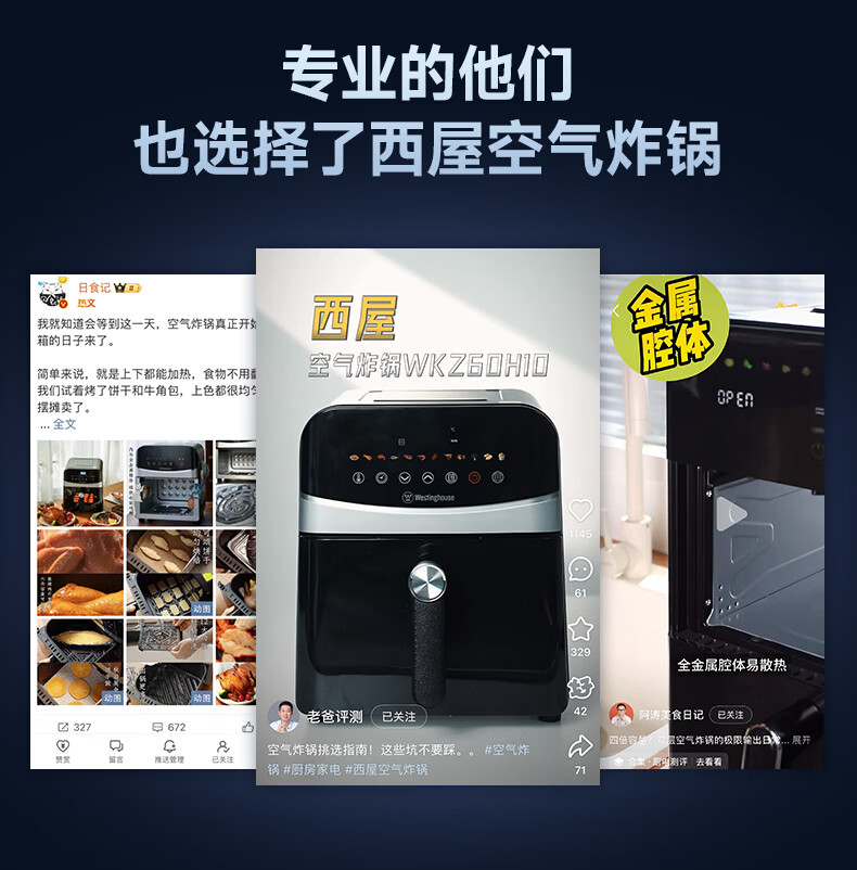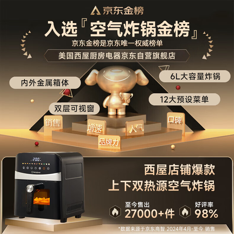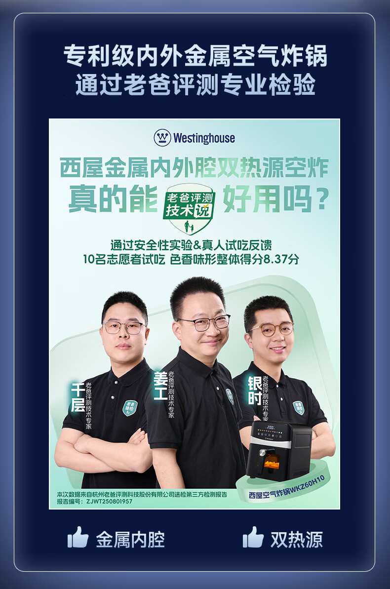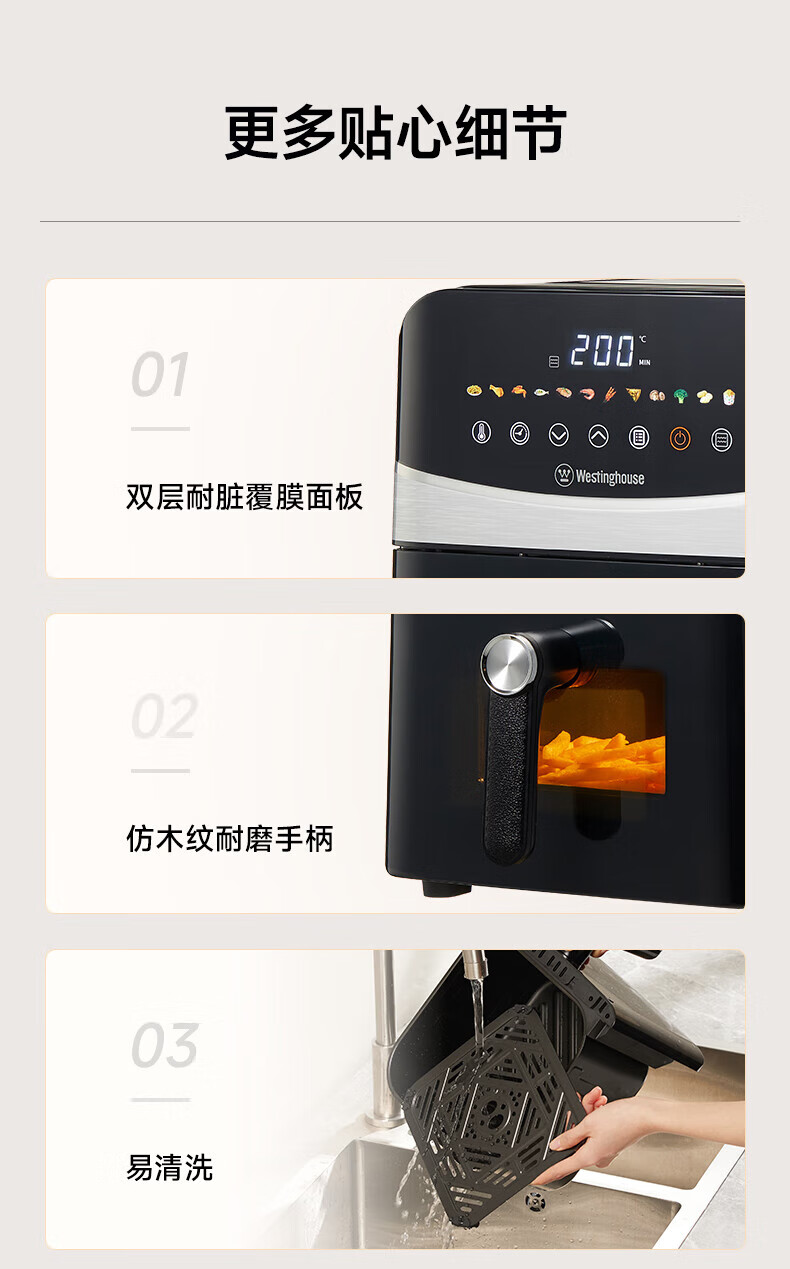 • 商品名称:西屋(Westinghouse)可视化空气炸锅6升大容量金属内腔体多功能烤箱免翻面炸锅 WKZ60H10 WKZ60H10/台