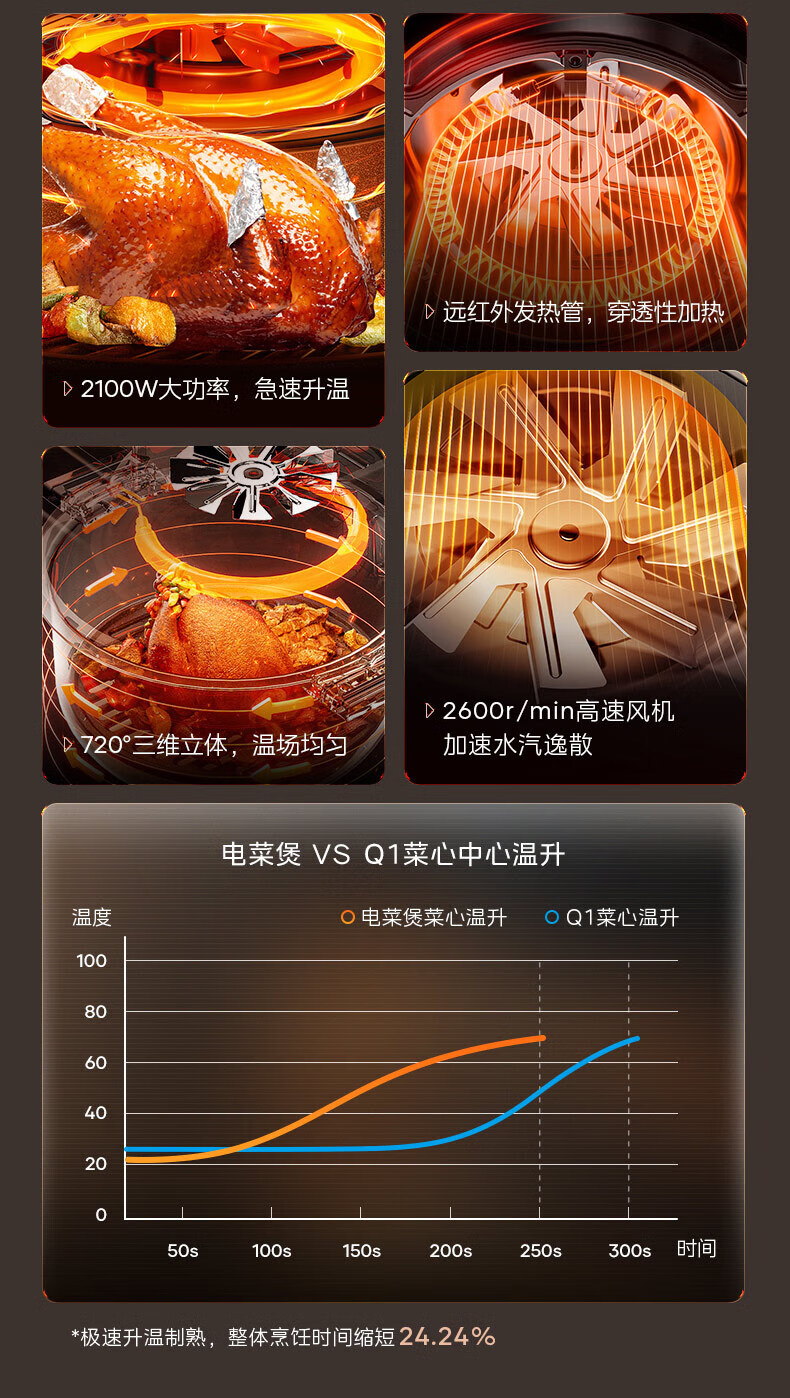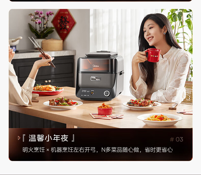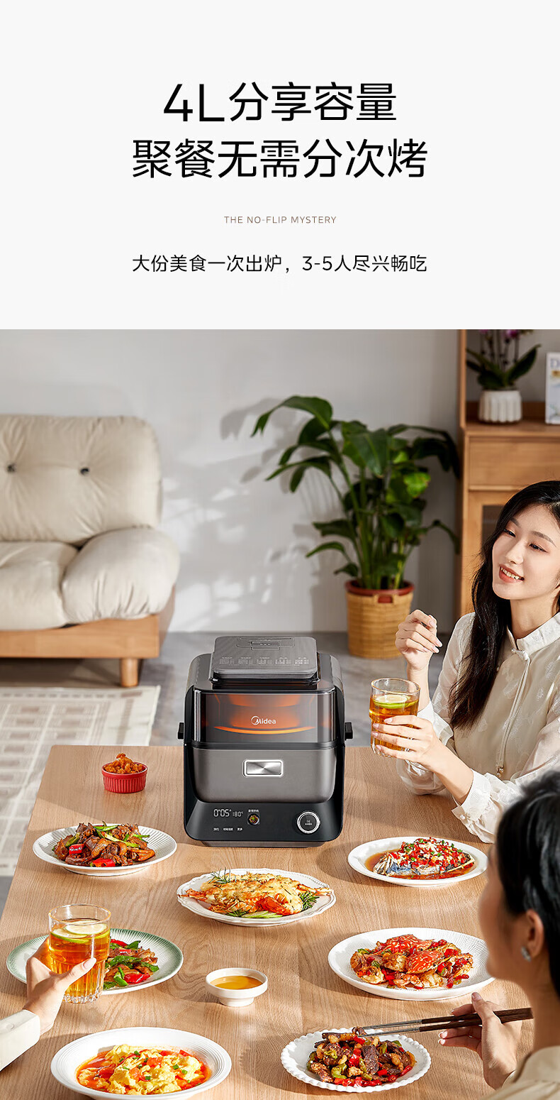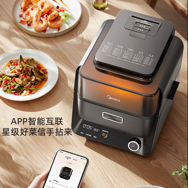 美的(Midea)空气炸可视仓爆炒锅4L容量多功能上下炭纤维热源免翻面炒恒温备长炭易洁内锅 KZC40C01 MF-KZC40C01XM/台