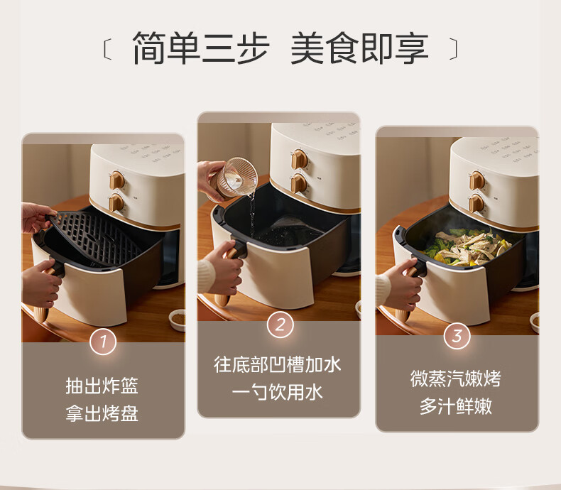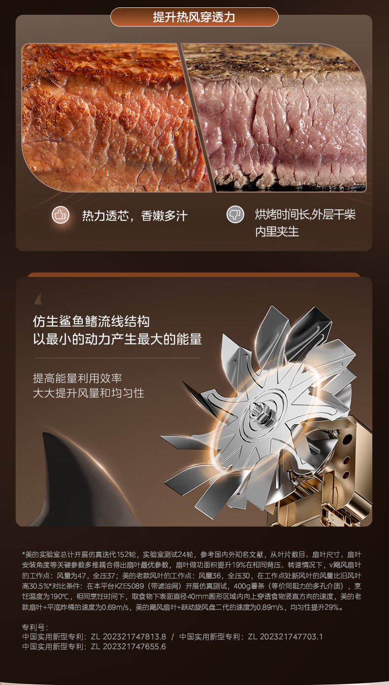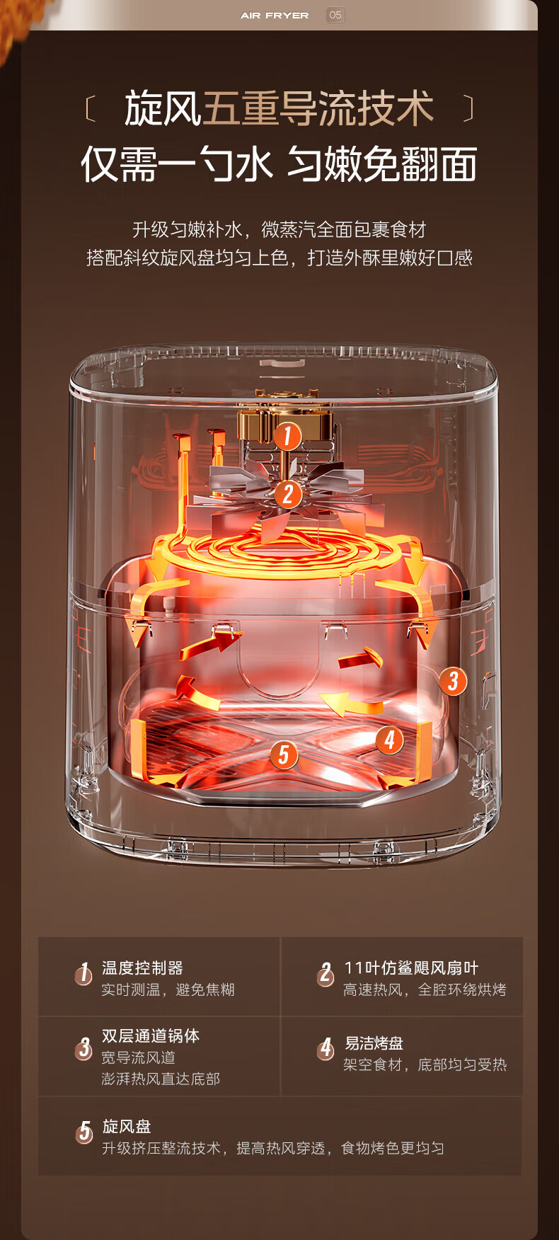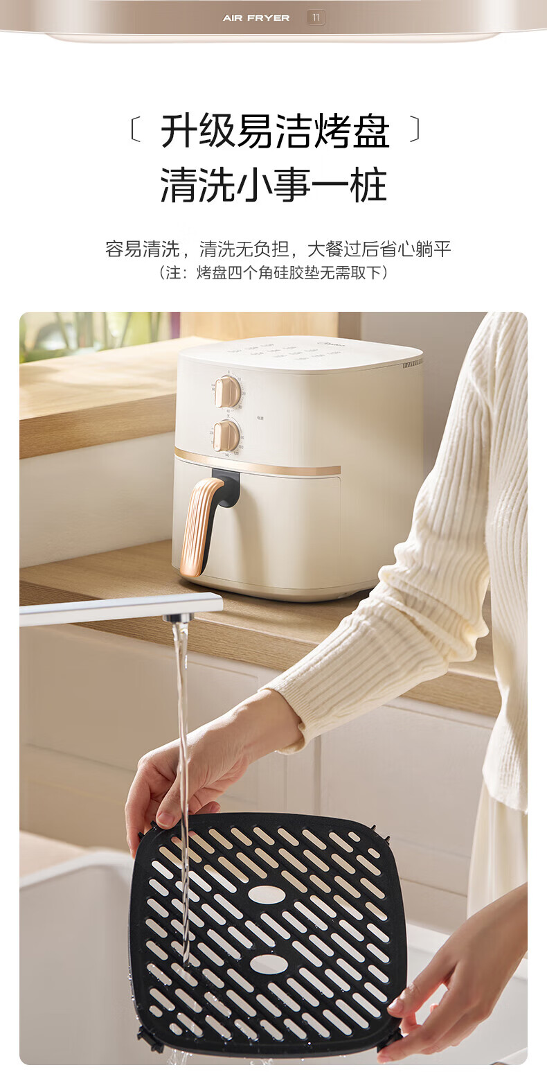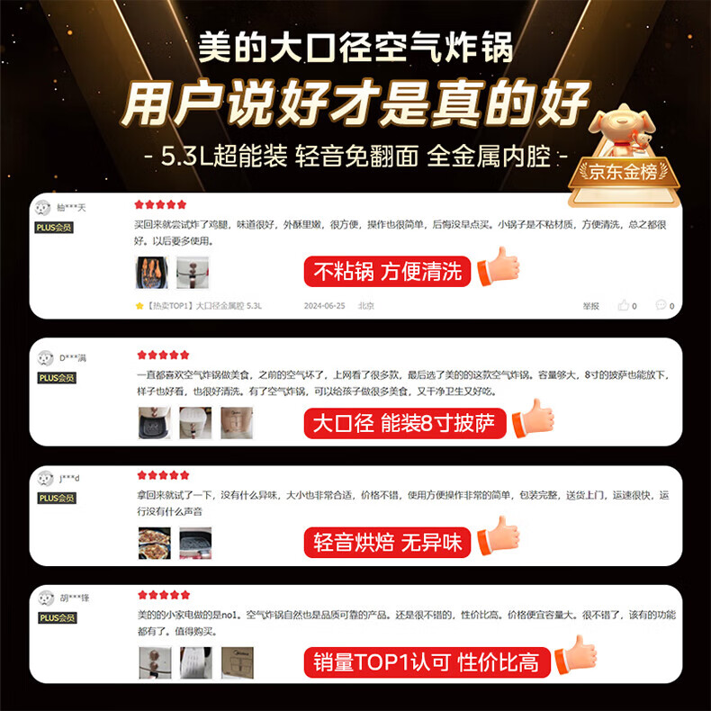 美的(Midea)空气炸锅免翻面双旋钮家用大容量5.3L多功能空气炸锅蒸烤一体热风循环金属内腔 MF-KZE535J5 MF-KZE535J5/台