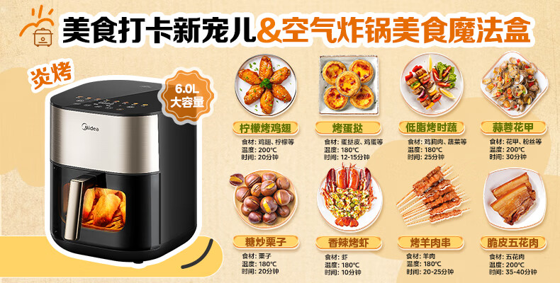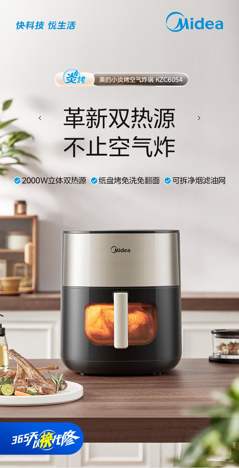 • 商品名称:美的(Midea)小炎烤空气炸锅蒸烤一体上下双热源免翻面 可视窗口家用智能大容量6L金属内腔蒸汽嫩炸烤箱KZC6054 MF-KZC6054/台