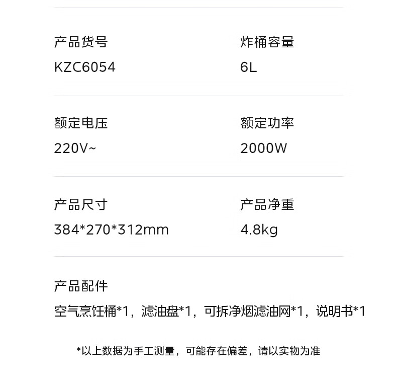 包装清单: 主机(烤盘、可拆滤油网)*1、说明书*1"