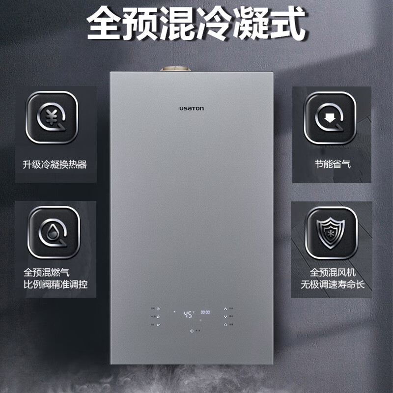 • 商品名称:阿诗丹顿(USATON)全预混超一级能效冷凝式燃气壁挂炉 高效板式换热 低氮排放 采暖热水两用LL1GBQ24-BH LL1GBQ24-BH/台