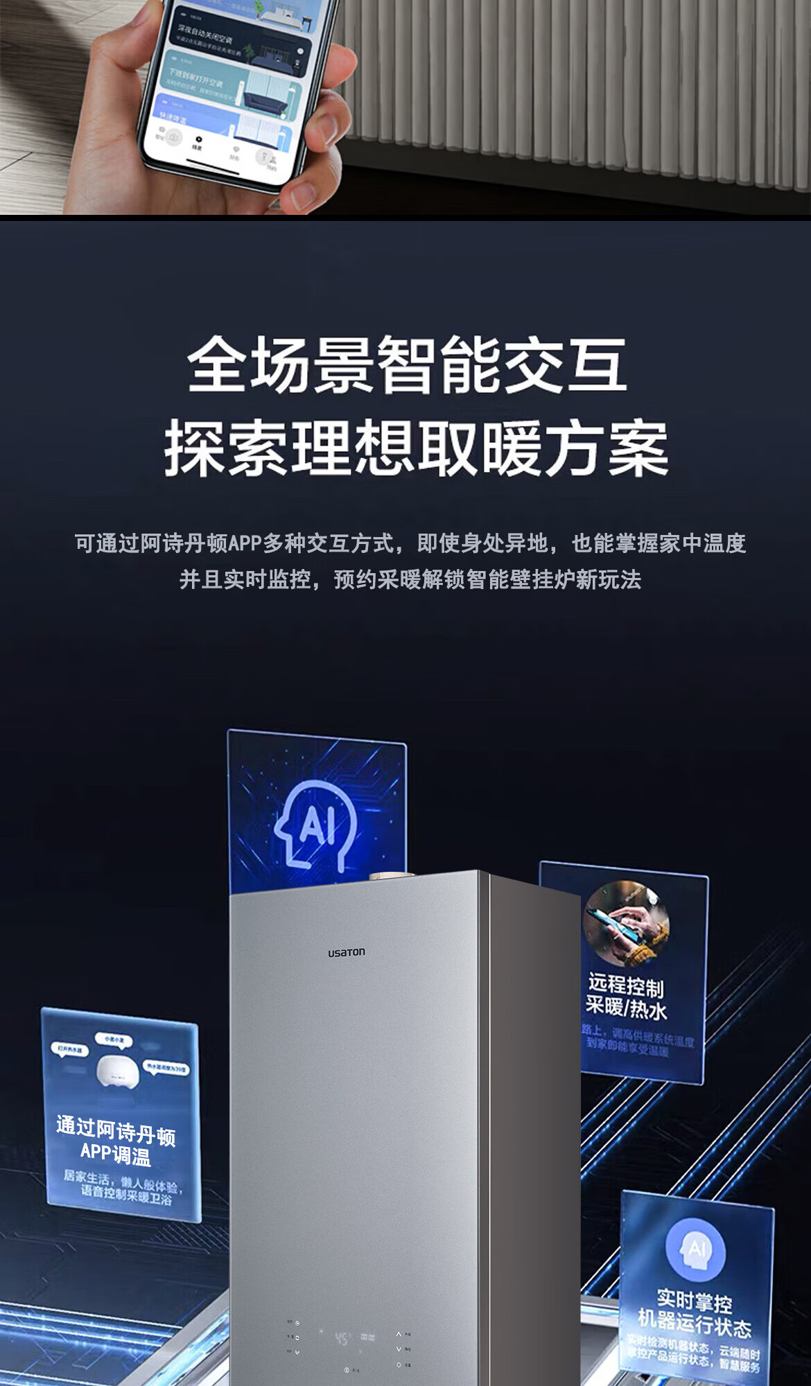 商品名称: 阿诗丹顿(USATON)全预混超一级能效冷凝式燃气壁挂炉 高效板式换热 低氮排放 采暖热水两用LL1GBQ24-BH LL1GBQ24-BH/台