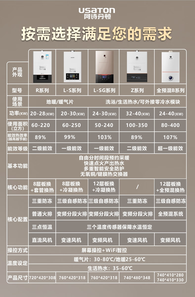 • 商品名称:阿诗丹顿(USATON)一级能效冷凝式燃气壁挂炉 采暖生活热水两用 智能WIFI 玻璃面板全面屏LL1PBD24-L2414SF LL1PBD24-L2414SF/台