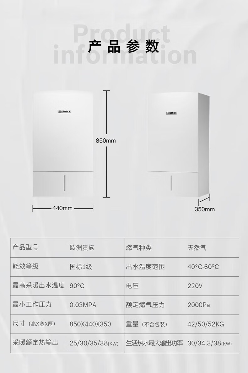 商品名称: 博世博世 壁挂炉超一级能效全预混冷凝炉燃气壁挂炉两用欧洲贵族30KW采暖炉LL1GB Q30-(ZWB30-3A G) LL1GBQ30-(ZWB30-3A G)/台
