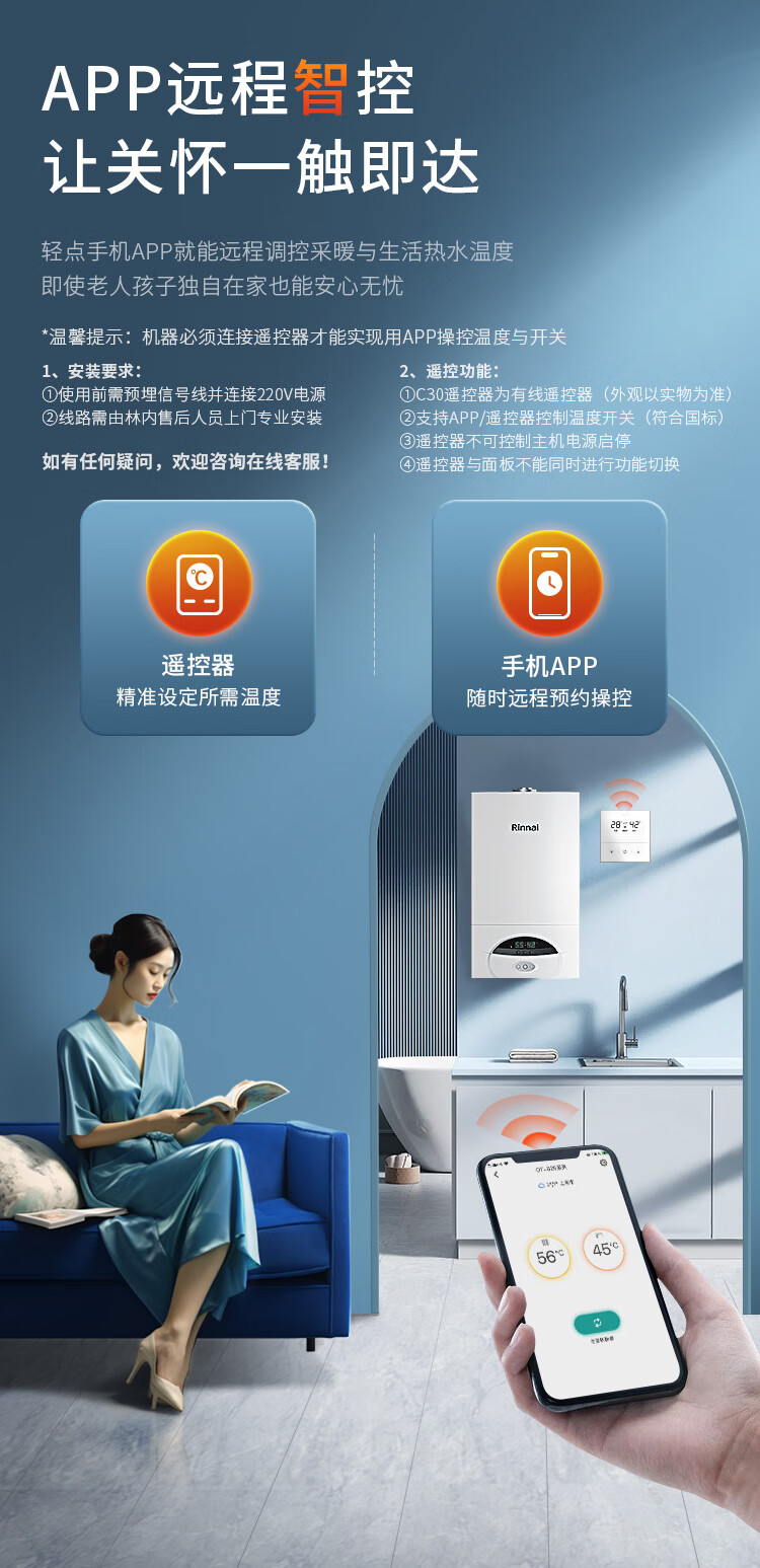 • 商品名称:林内(Rinnai)燃气壁挂炉 采暖热水两用APP智控恒温 天然气地暖生活水两用采暖锅炉RBS-18C30(L) L1PB20-18C30/台