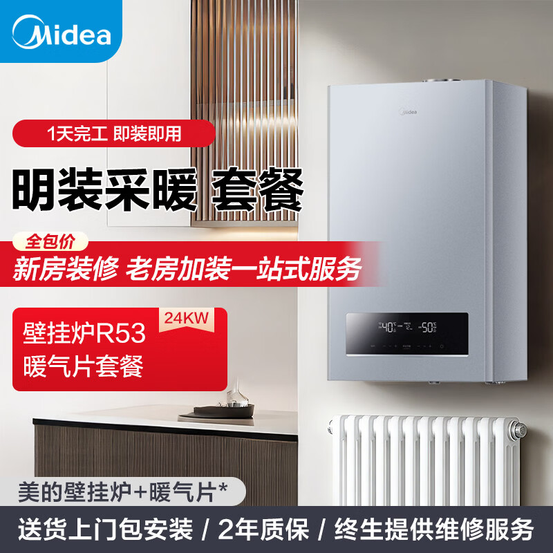 • 商品名称:美的(Midea)壁挂炉暖气片家用天然气采暖散热片水暖钢制壁挂式供暖系统 LL1PBD24-R53+五组暖气片 LL1PBD24-R53/台