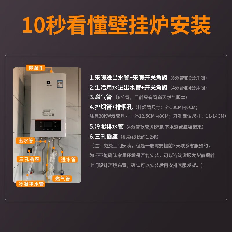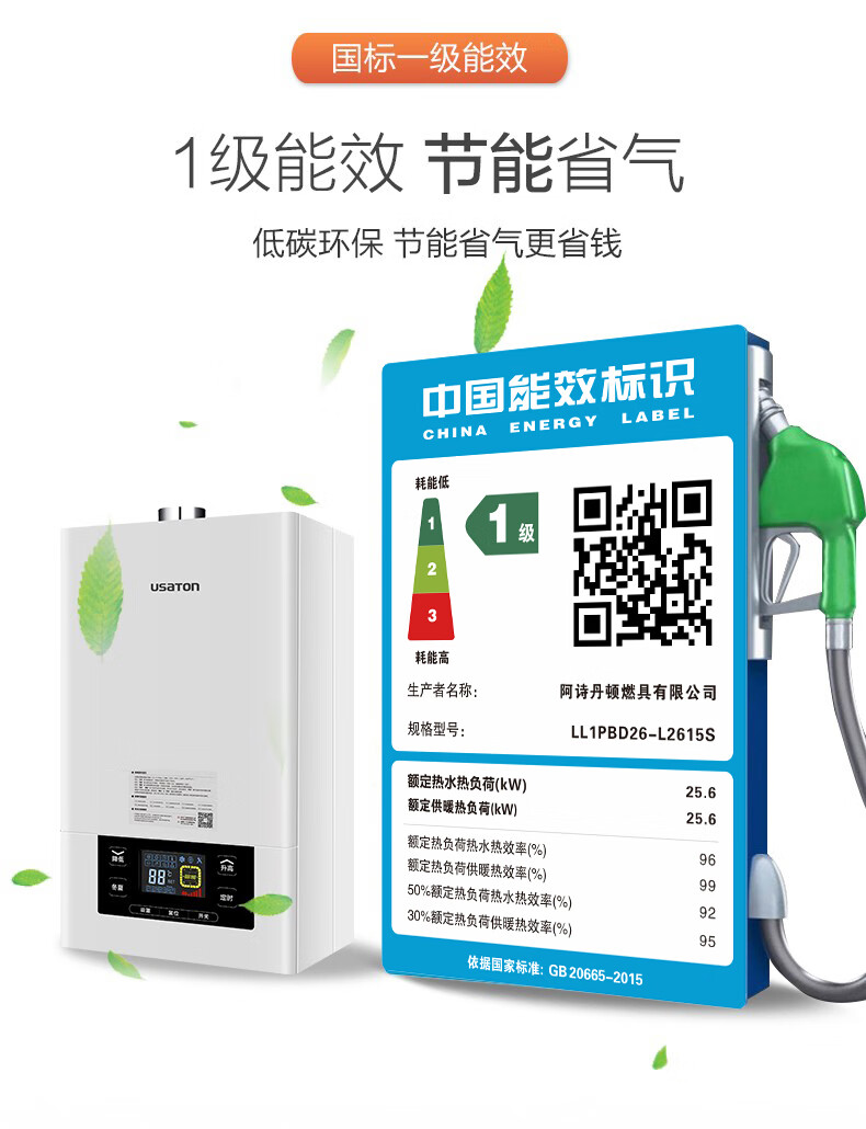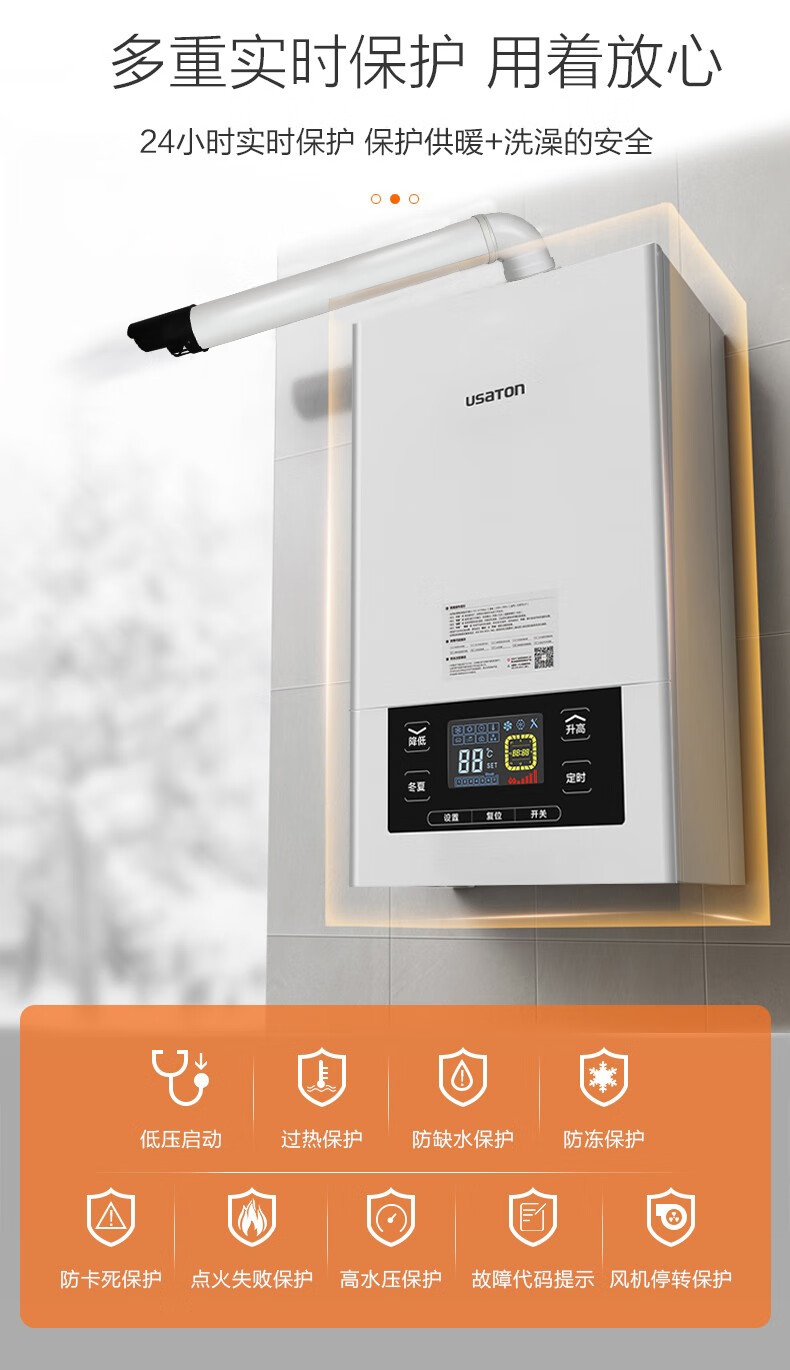 • 商品名称:阿诗丹顿(USATON) 一级能效冷凝机燃气壁挂炉天然气地暖锅炉采暖热水器LL1PBD26-L2615S LL1PBD26-L2615S/台