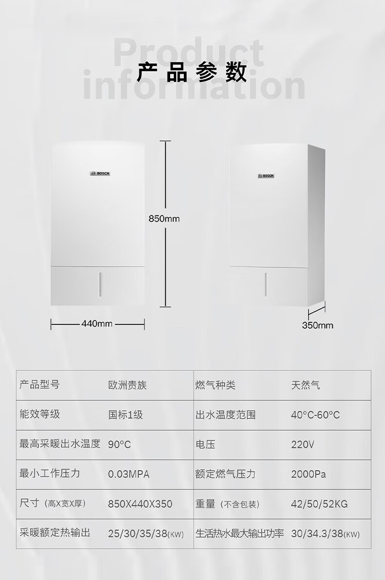 • 商品名称:博世壁挂炉超一级能效全预混冷凝炉燃气壁挂炉两用欧洲贵族25KW采暖炉 LL1GBQ26-(ZWB25/30-3A G)/台