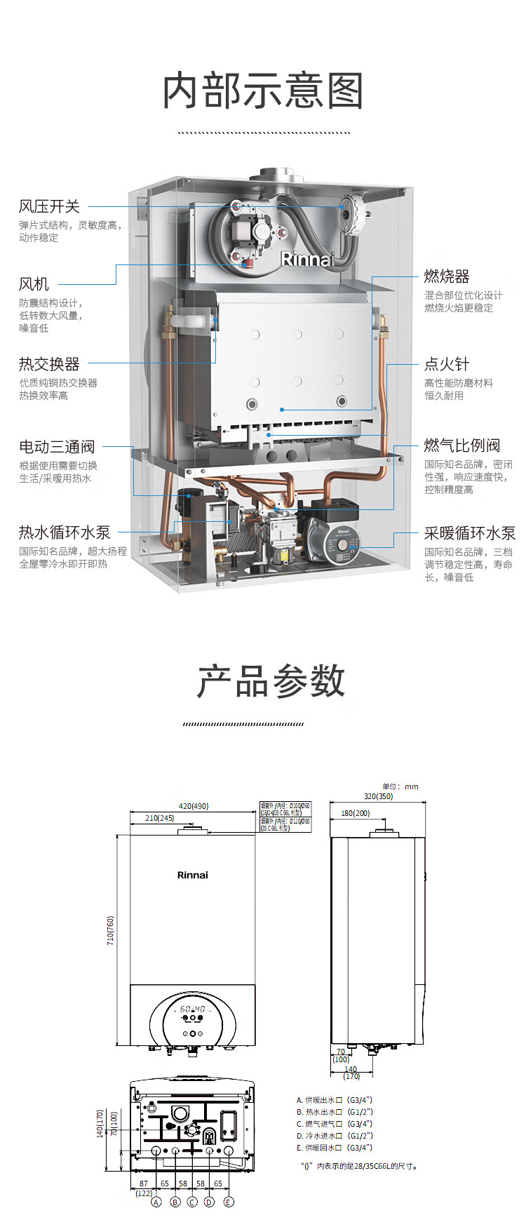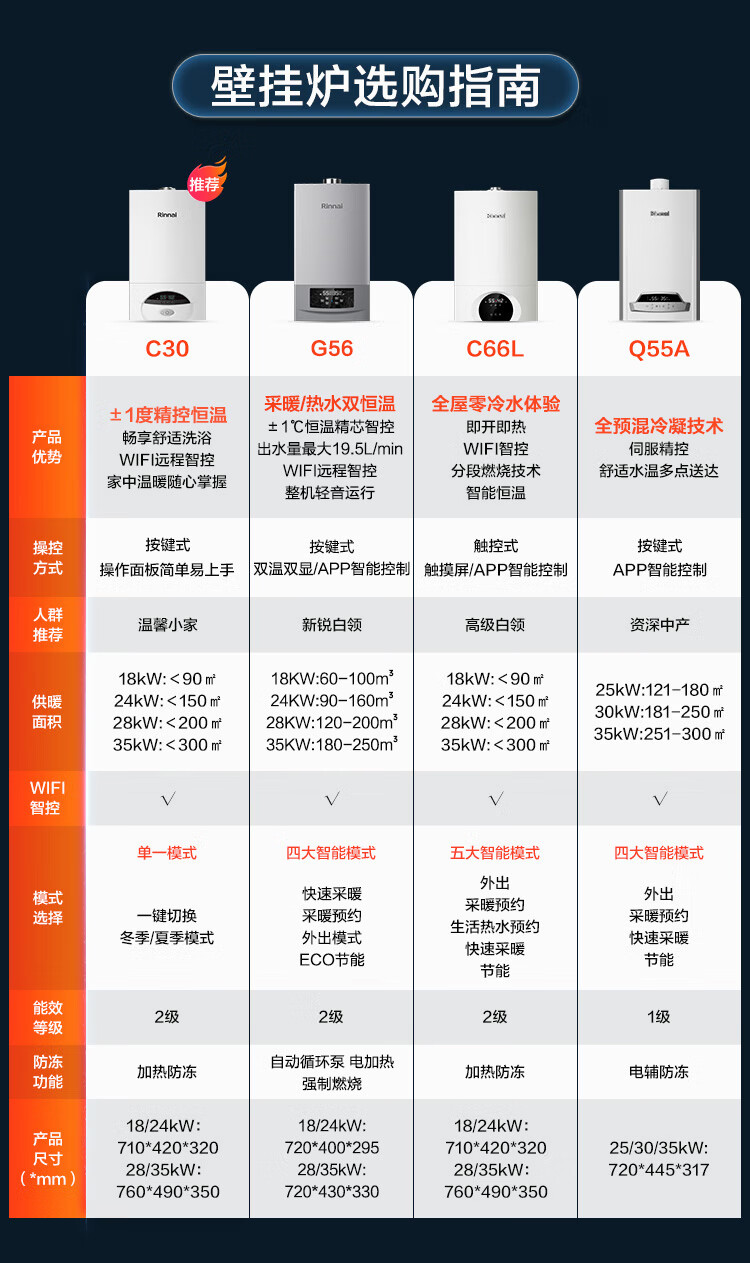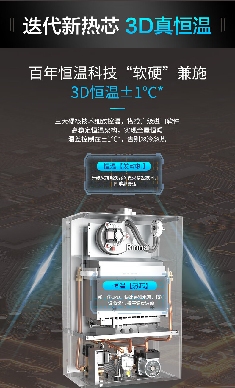 商品名称: 林内(Rinnai)全屋零冷水恒温燃气壁挂炉 Wifi智控采暖两用热水器家用地暖锅炉RBS-18C66L(L) L1PB20-18C66L/台