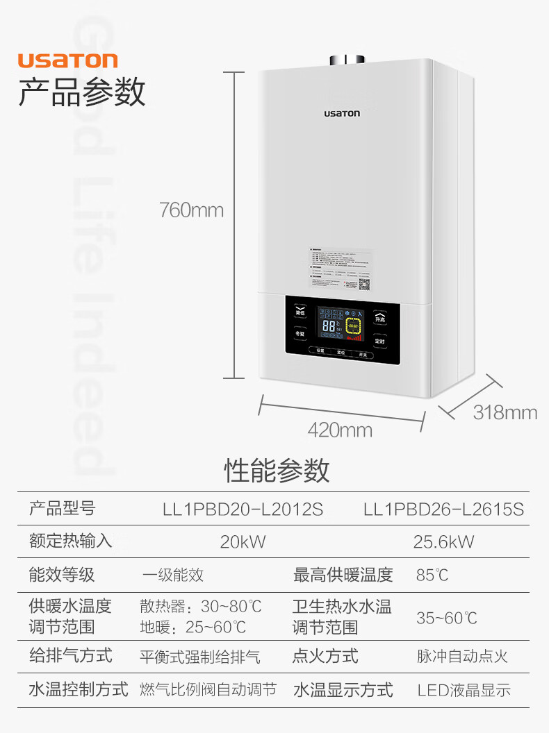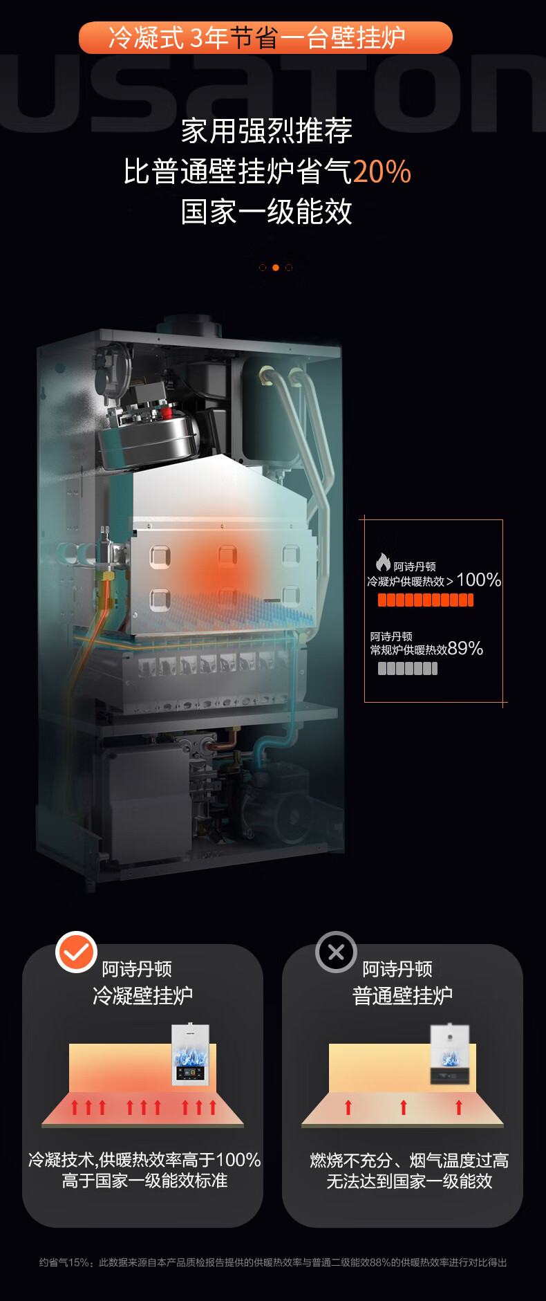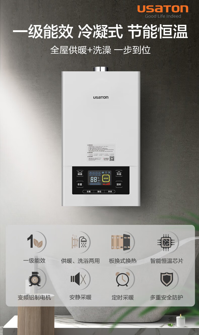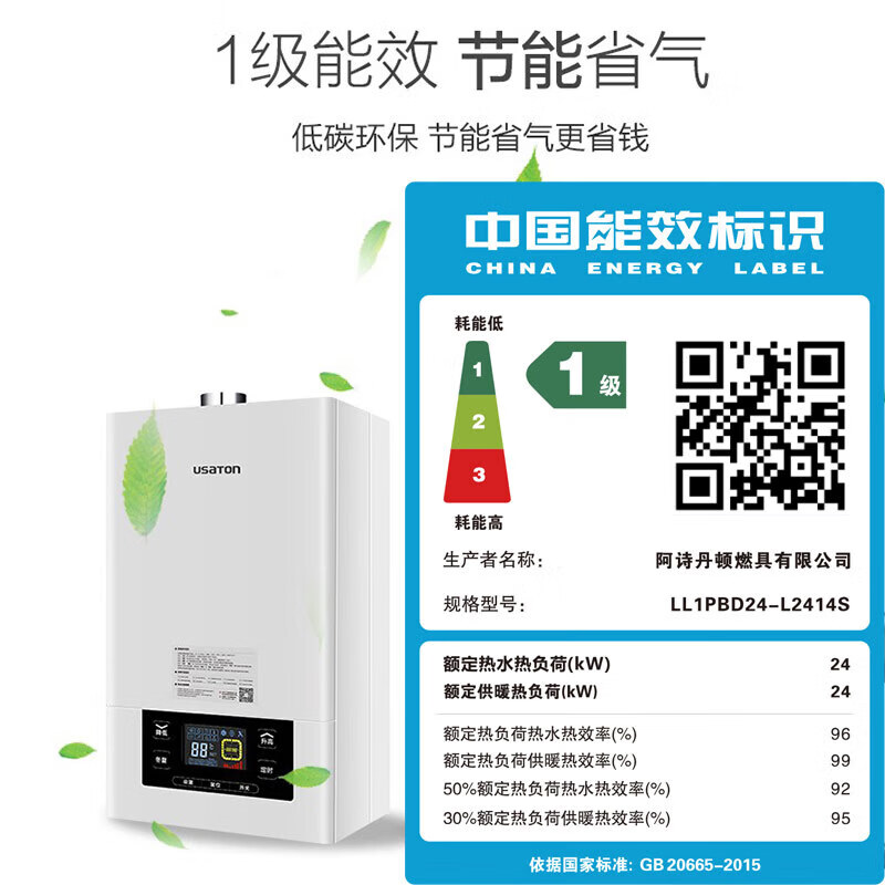• 商品名称:阿诗丹顿(USATON)一级能效冷凝机 燃气壁挂炉天然气地暖采暖热水器LL1PBD24-L2414S WIFI版 LL1PBD24-L2414S/台
