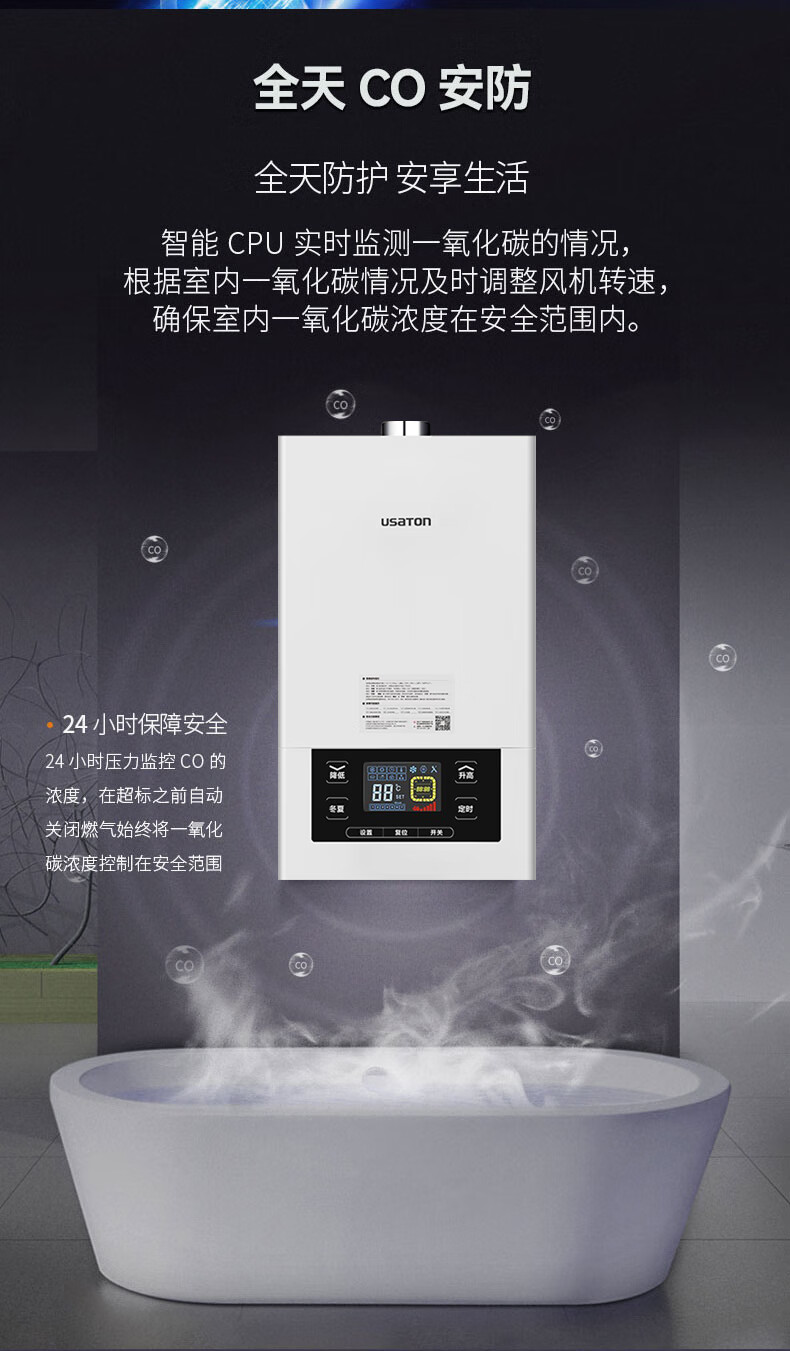 阿诗丹顿(USATON)一级能效冷凝机 燃气壁挂炉天然气地暖采暖热水器LL1PBD24-L2414S WIFI版 LL1PBD24-L2414S/台