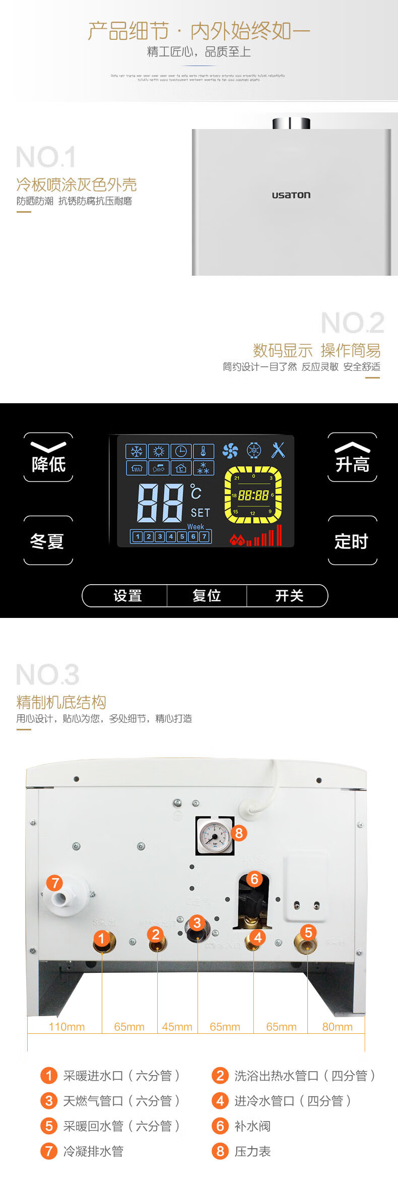 商品名称: 阿诗丹顿(USATON)一级能效冷凝机 燃气壁挂炉天然气地暖采暖热水器LL1PBD24-L2414S WIFI版 LL1PBD24-L2414S/台