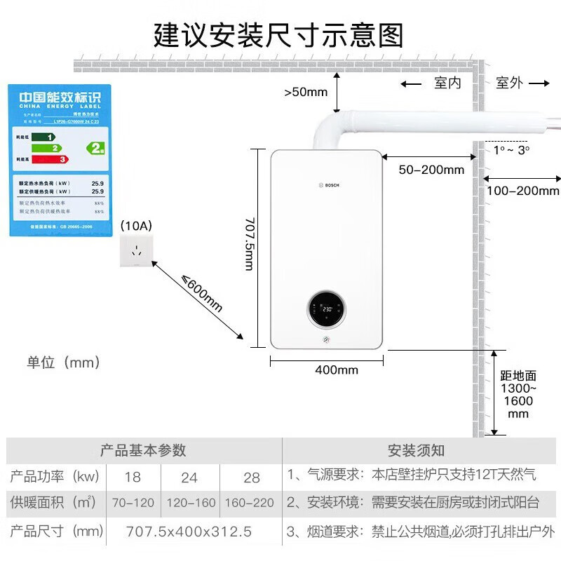• 商品名称:博世(BOSCH)燃气壁挂炉采暖炉【带货安装】家用 地暖洗浴恒温热水两用采暖炉 德国品质 盖世G7100 28KW L1P31-G7100W 28 CG/件