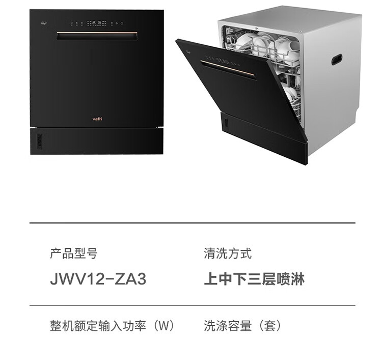 • 商品名称:华帝(VATTI) JWV12-ZA3嵌入式洗碗机12套大容量一键消毒洗双风道热风烘干多重功能智选 JWV12-ZA3/台