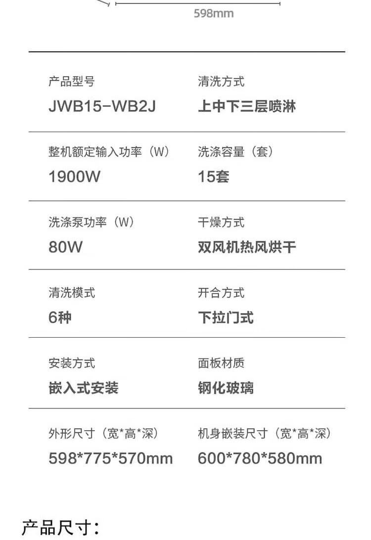 商品名称: 华帝(VATTI)JWB15-WB2J嵌入式洗碗机15套大容量五星级消杀双环流烘干全钢内胆全自动安全稳定环保 JWB15-WB2J/台