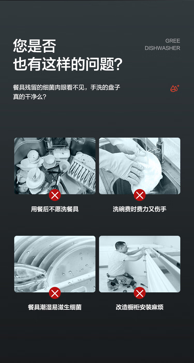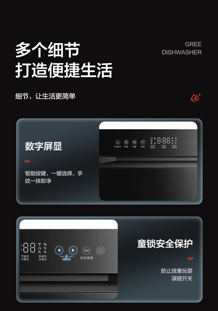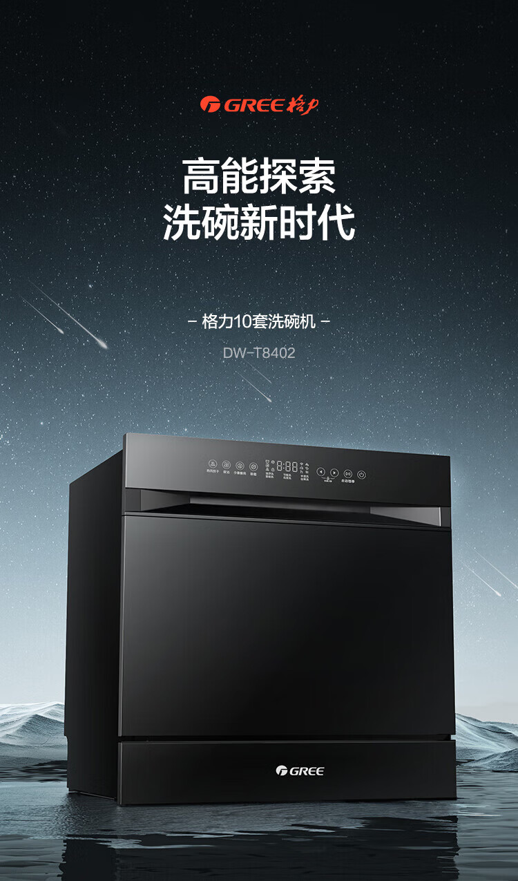家用电器  > 厨卫大电  > 洗碗机  >  格力/GREE  >  格力(GREE)10套大容量独立式嵌入式两用家用自动除菌节能热风烘干智能洗碗机 DW-T8402(黑) DW-T8402/套