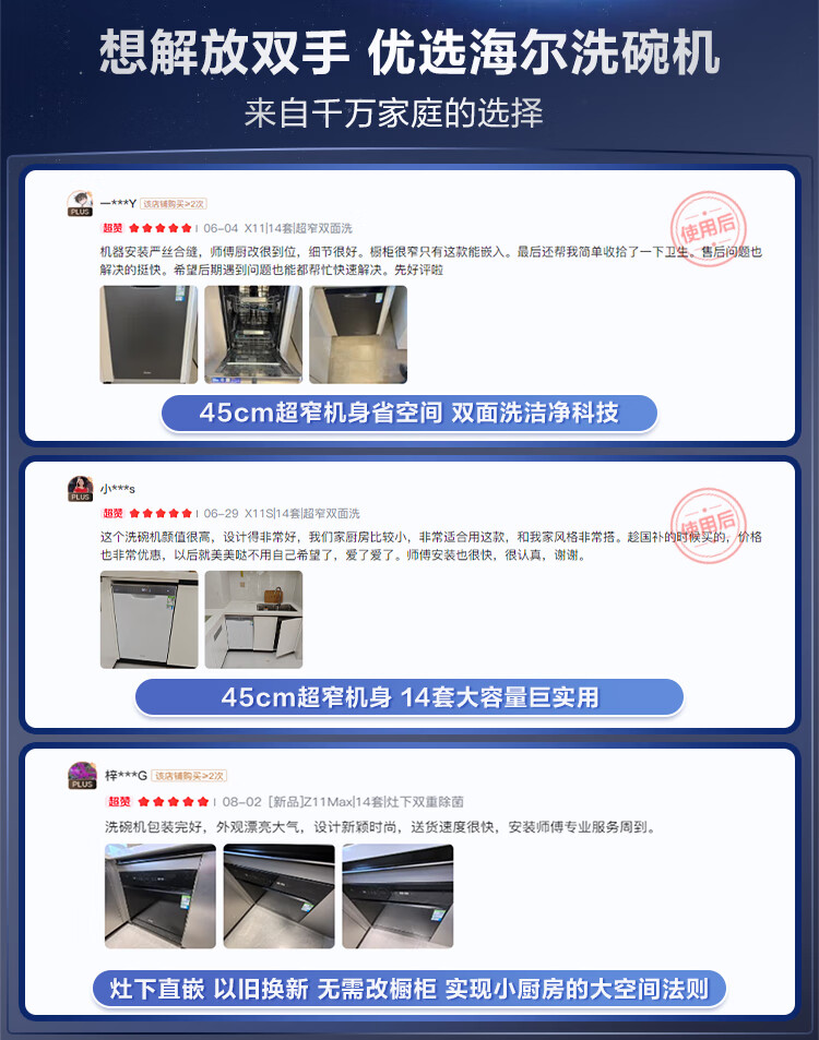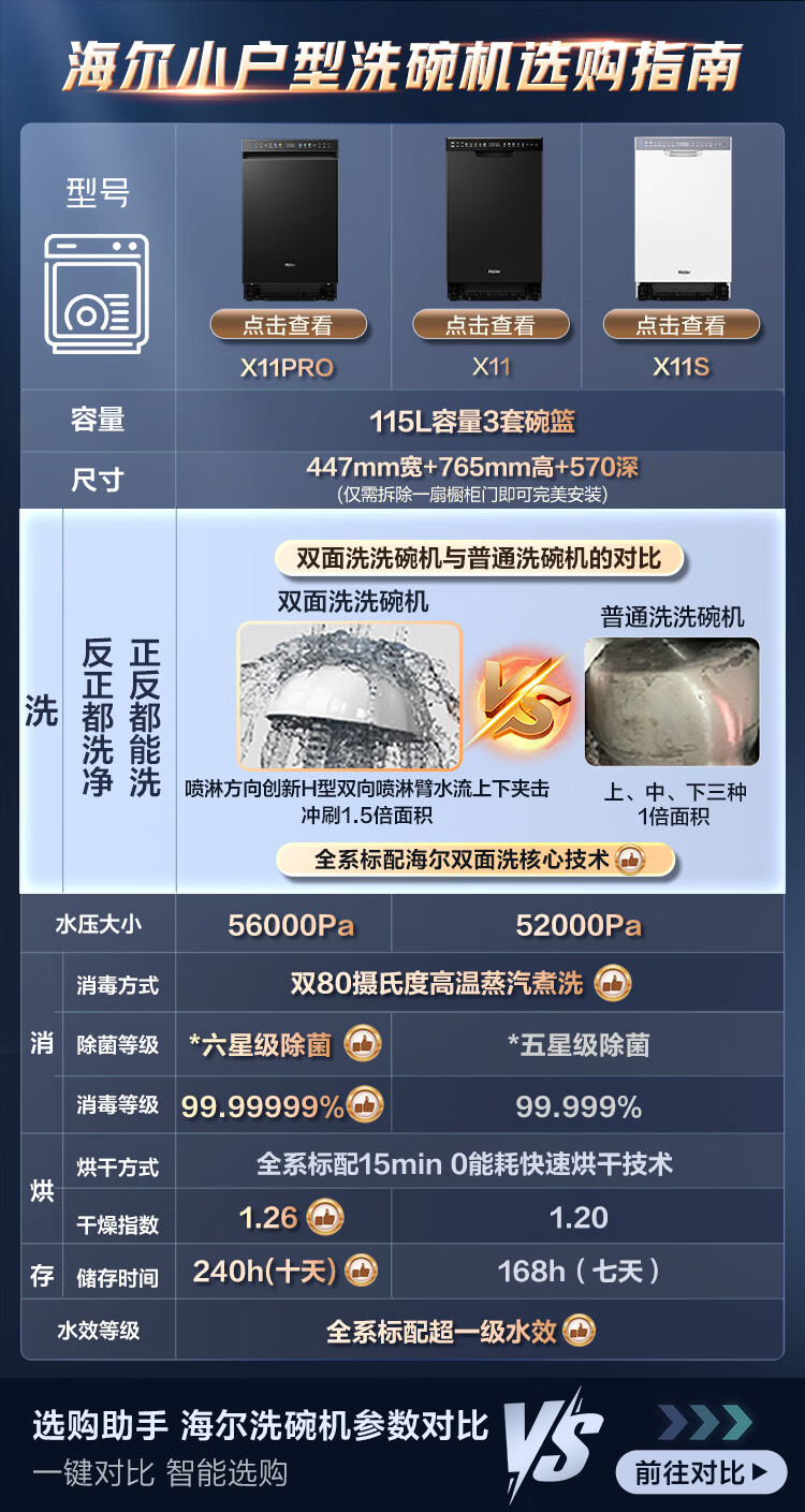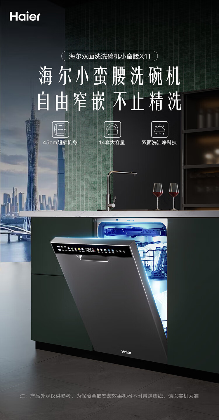家用电器  > 厨卫大电  > 洗碗机  >  海尔/Haier  >  海尔(Haier)【小蛮腰X11】洗碗机嵌入式中型115L双面洗大容量45cm超窄分区洗一级水效7天净存EYBW143286SHU1 EYBW143286SHU1/台