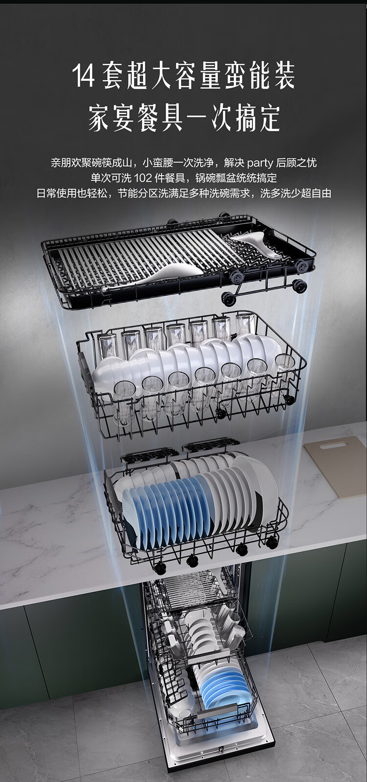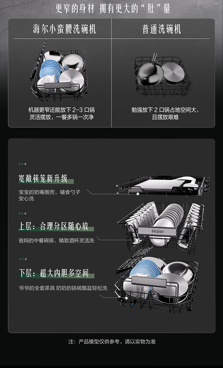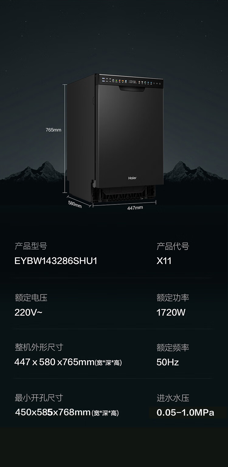 商品名称: 海尔(Haier)【小蛮腰X11】洗碗机嵌入式中型115L双面洗大容量45cm超窄分区洗一级水效7天净存EYBW143286SHU1 EYBW143286SHU1/台