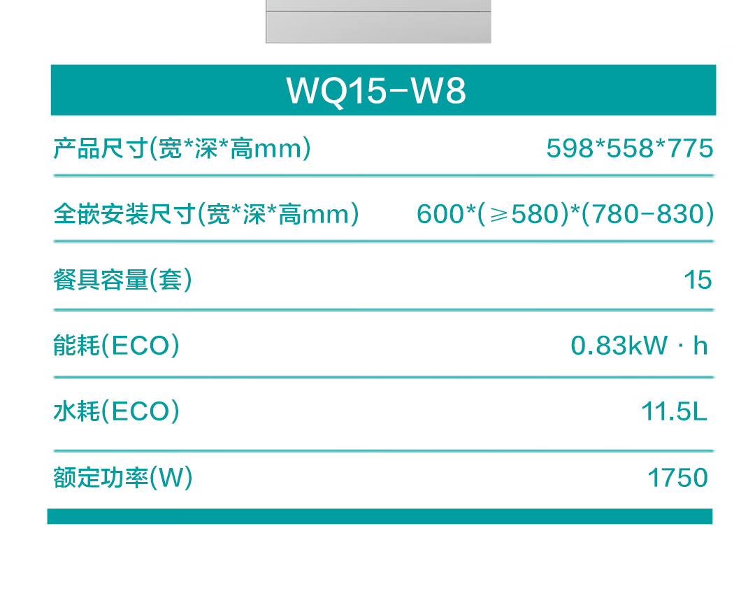 • 商品名称:海信(Hisense)【专卖店】15套大容量变频62000Pa大水压五星消毒无残水零菌洗碗机WQ15-W8 WQ15-W8/台