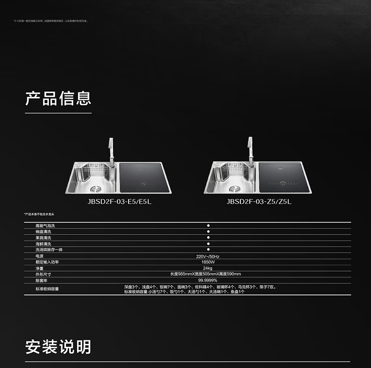 家用电器  > 厨卫大电  > 洗碗机  >  方太/FOTILE  >  方太【V11大店专供】水槽洗碗机JBSD2F-03-Z5(功能槽右无水龙头) JBSD2F-03-Z5/台