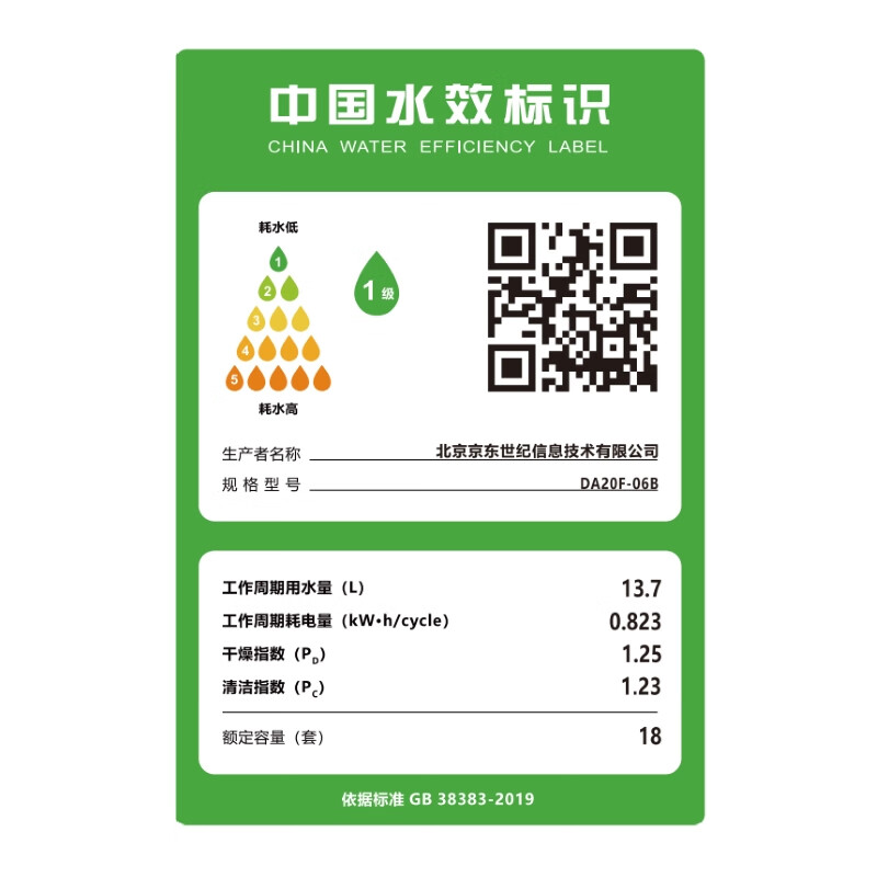 商品名称: 京东京造18套洗碗机嵌入式全自动家用大容量超一级水效110℃烘干 独嵌两用消毒一体机 DA20F-06B/台