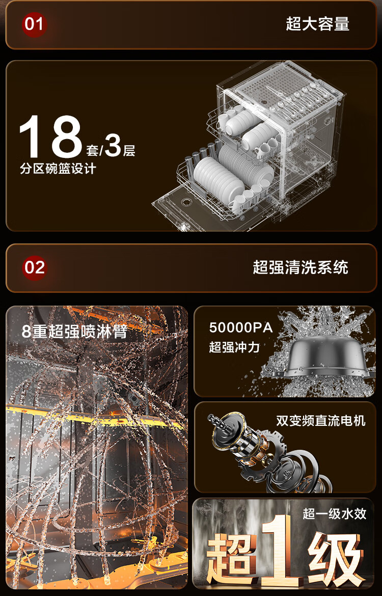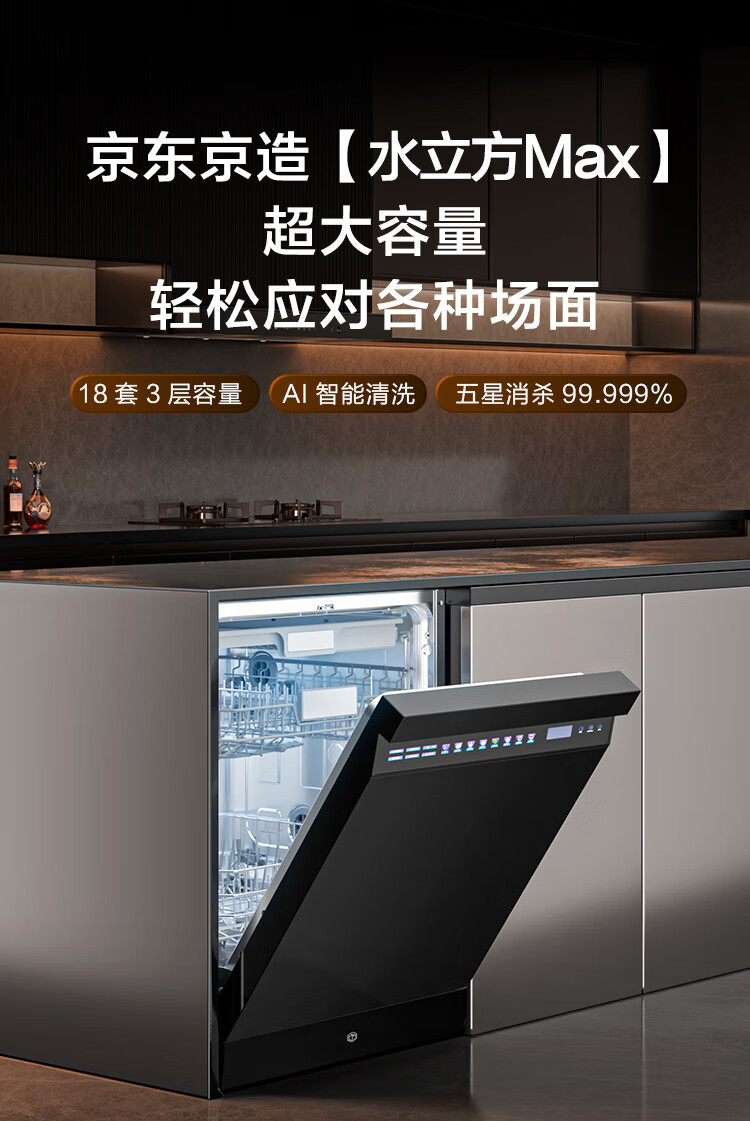 家用电器  > 厨卫大电  > 洗碗机  >  京东京造  >  京东京造18套洗碗机嵌入式全自动家用大容量超一级水效110℃烘干 独嵌两用消毒一体机 DA20F-06B/台