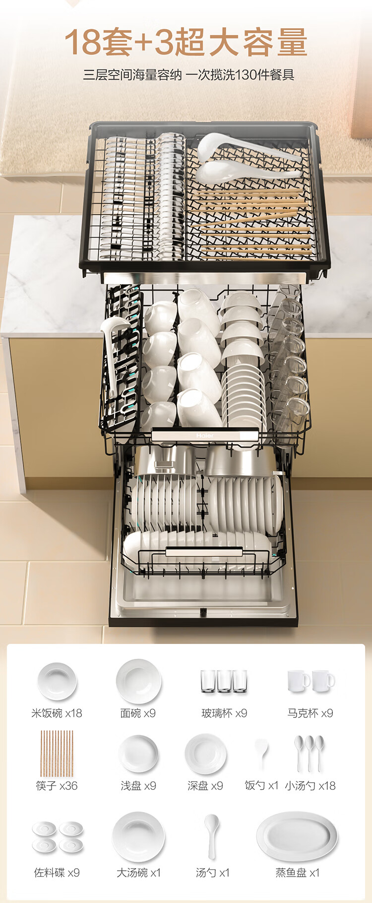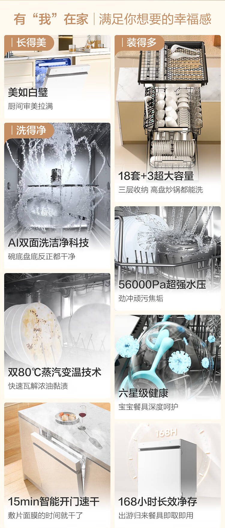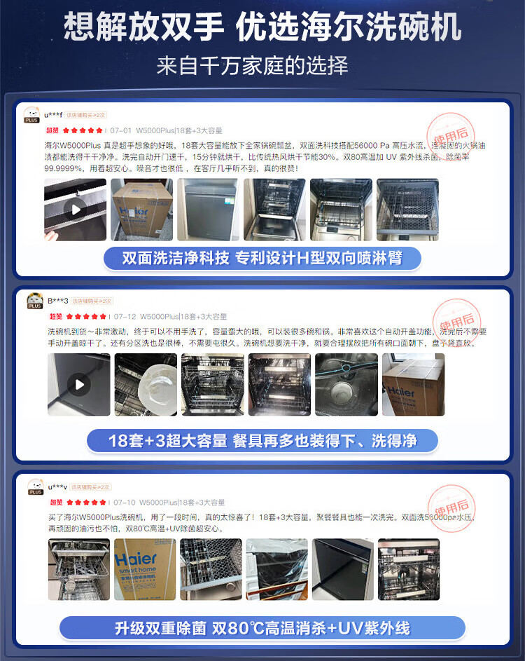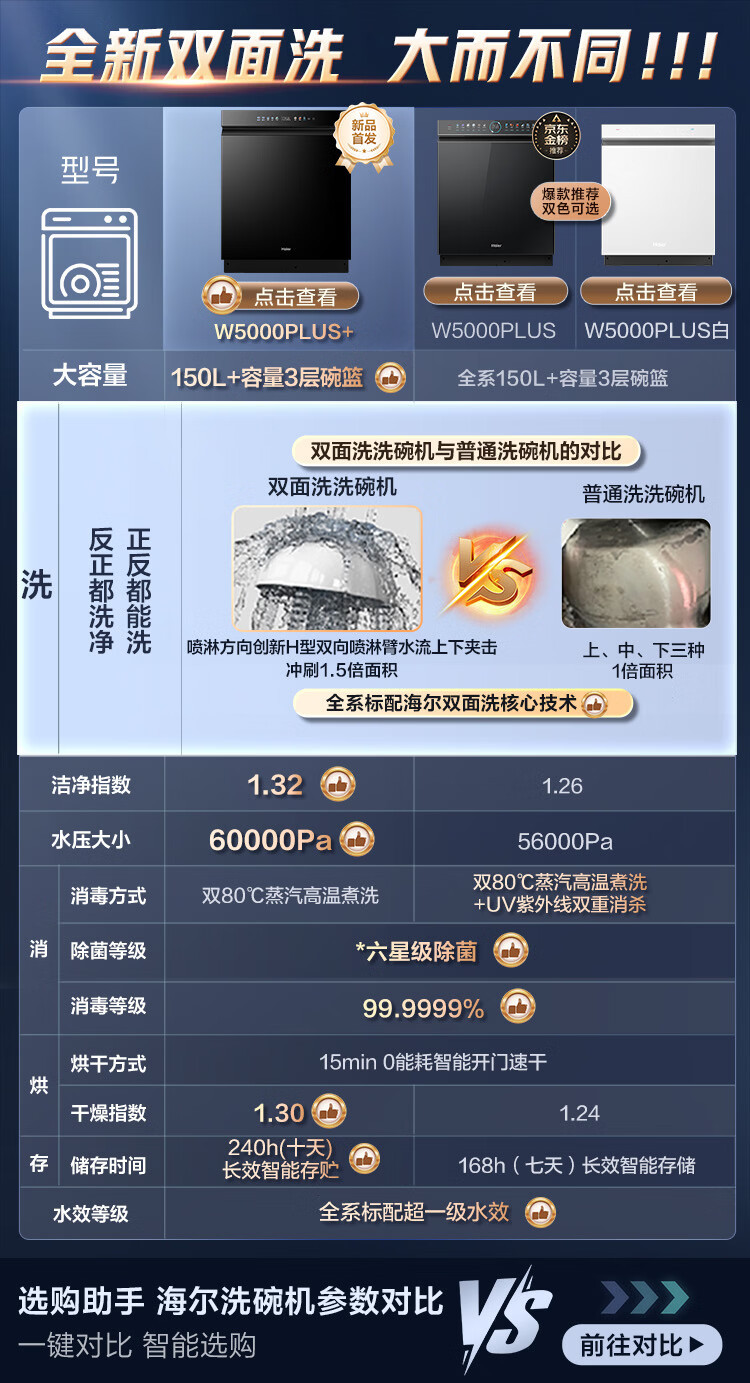 家用电器  > 厨卫大电  > 洗碗机  >  海尔/Haier  >  海尔(Haier)【双面洗W5000Plus白】洗碗机嵌入式150L+大容量高颜值六星级消杀UV双重除菌7天净存EYSW18566BBU1 EYSW18566BBU1/台