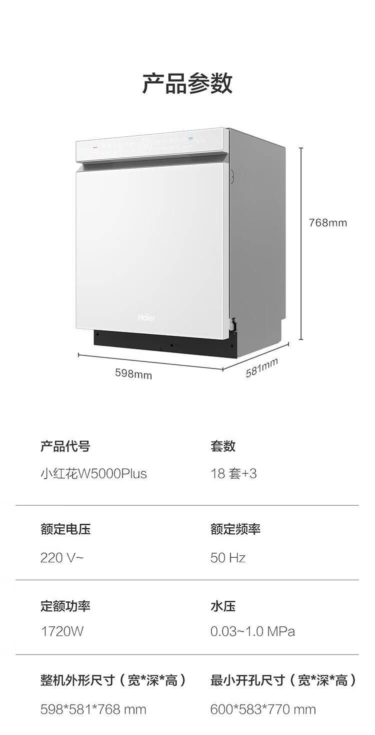• 商品名称:海尔(Haier)【双面洗W5000Plus白】洗碗机嵌入式150L+大容量高颜值六星级消杀UV双重除菌7天净存EYSW18566BBU1 EYSW18566BBU1/台