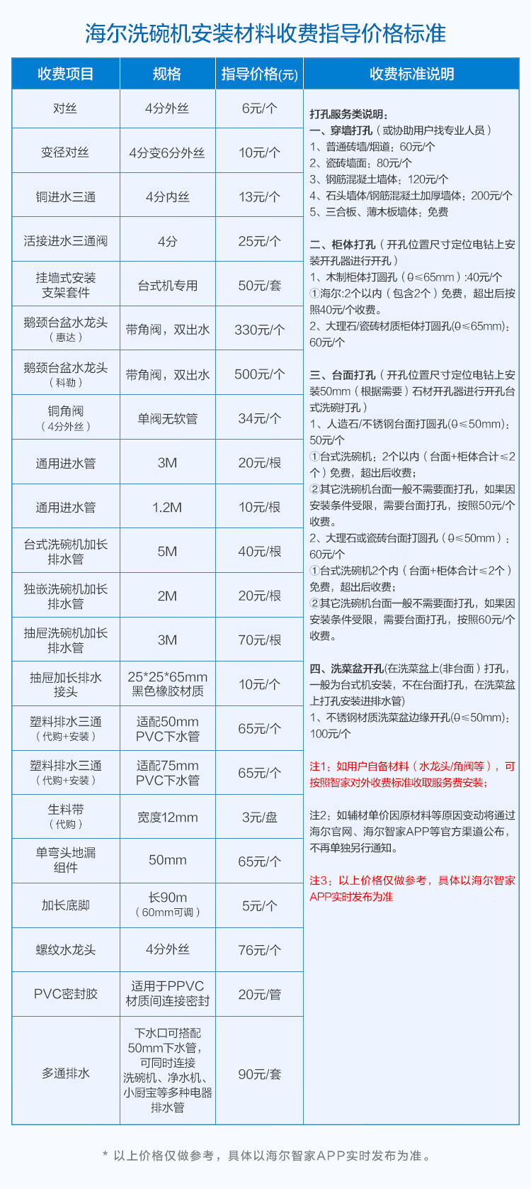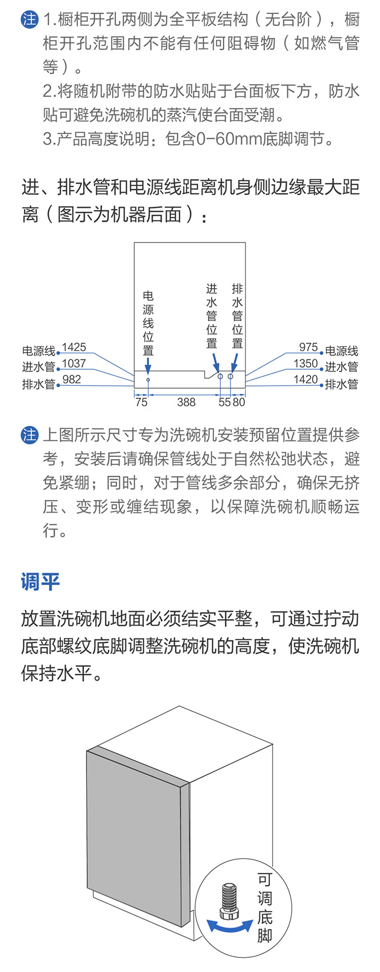 包装清单: 洗碗机x1、进水管x1、加盐漏斗x1、螺钉x4,防水贴x1,洗涤剂试用装x1,使用需知贴x1,使用说明书x1,下饰条x1