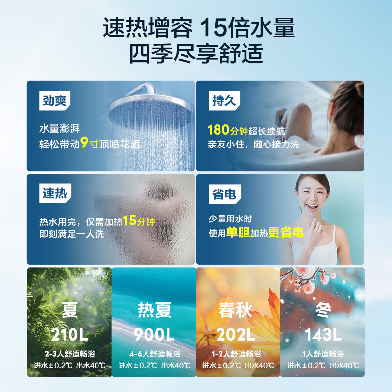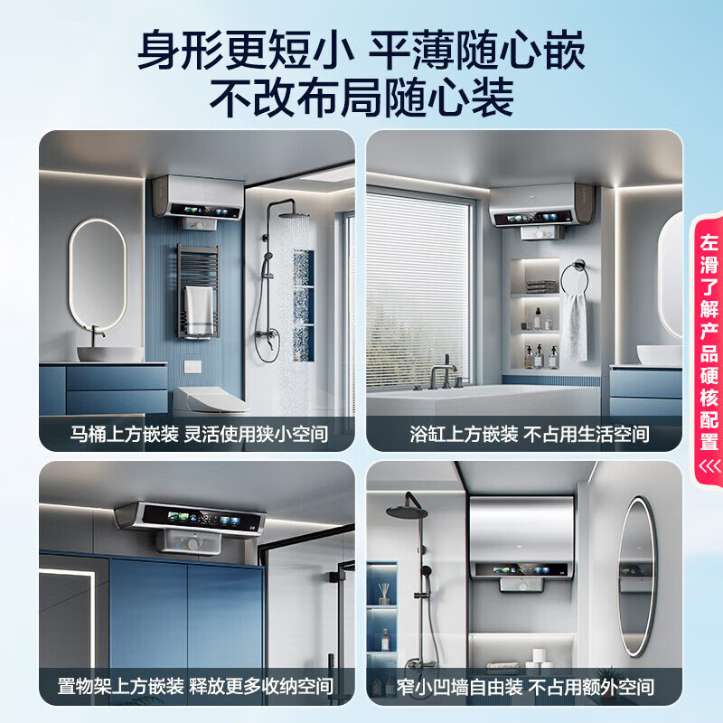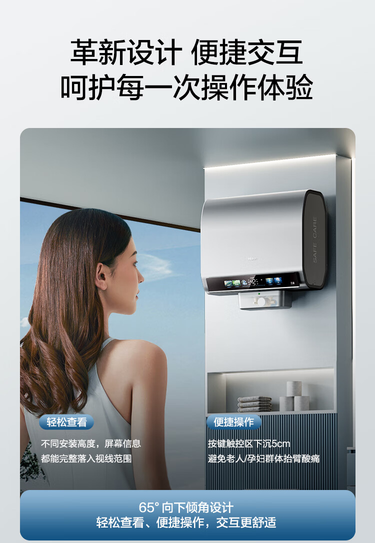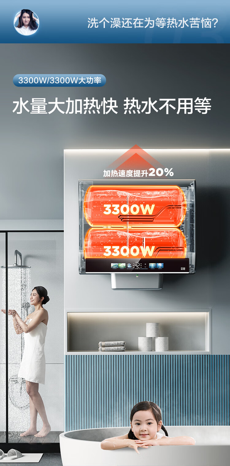 海尔(Haier)双胆扁桶电热水器60升麦浪BK5PRO 富锶小蓝瓶净肤洗 免清洗 双3300W速热节能一级能效 EC6003HD-BK5PROKAU1/台