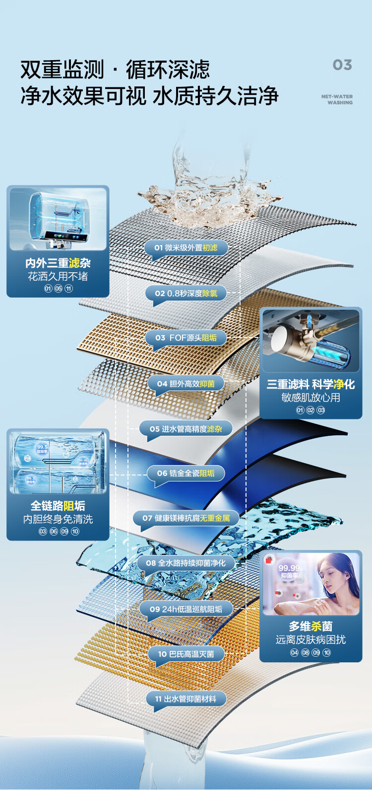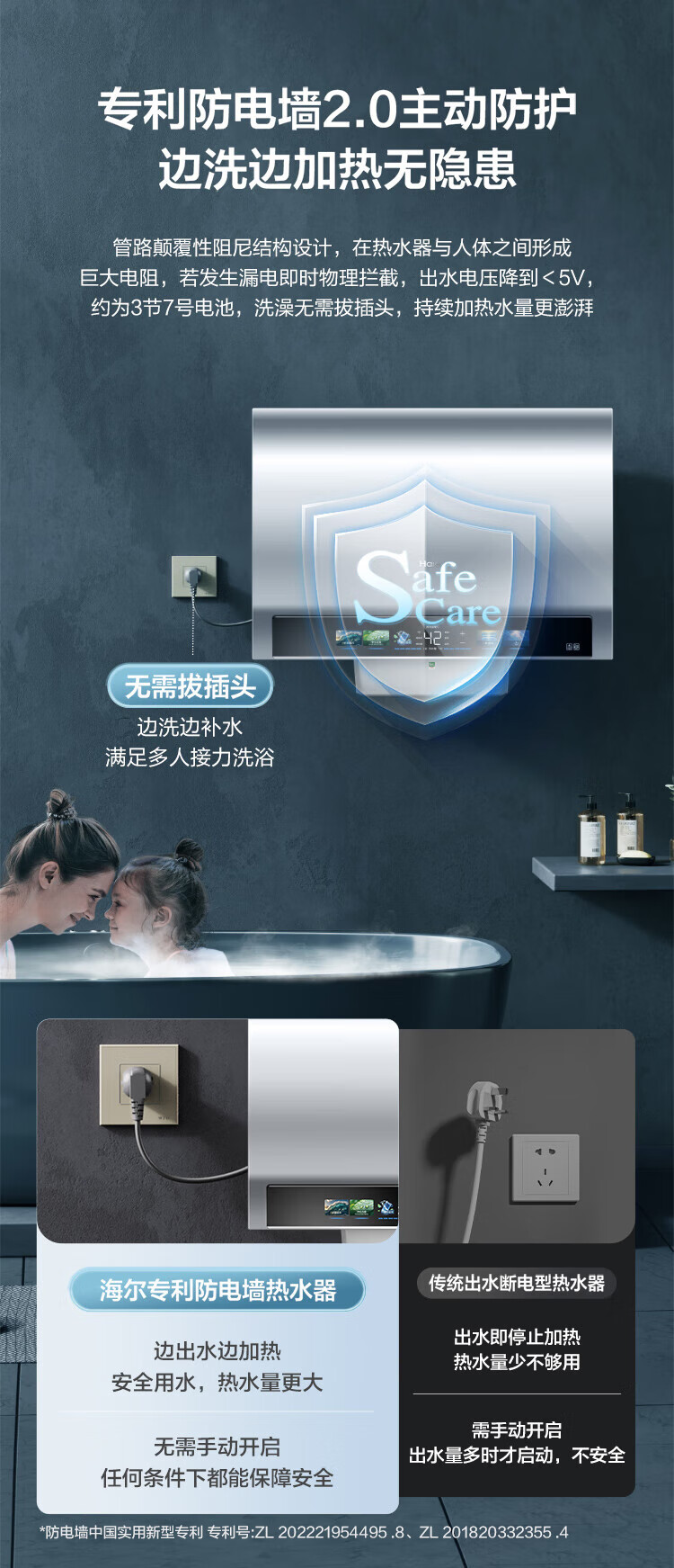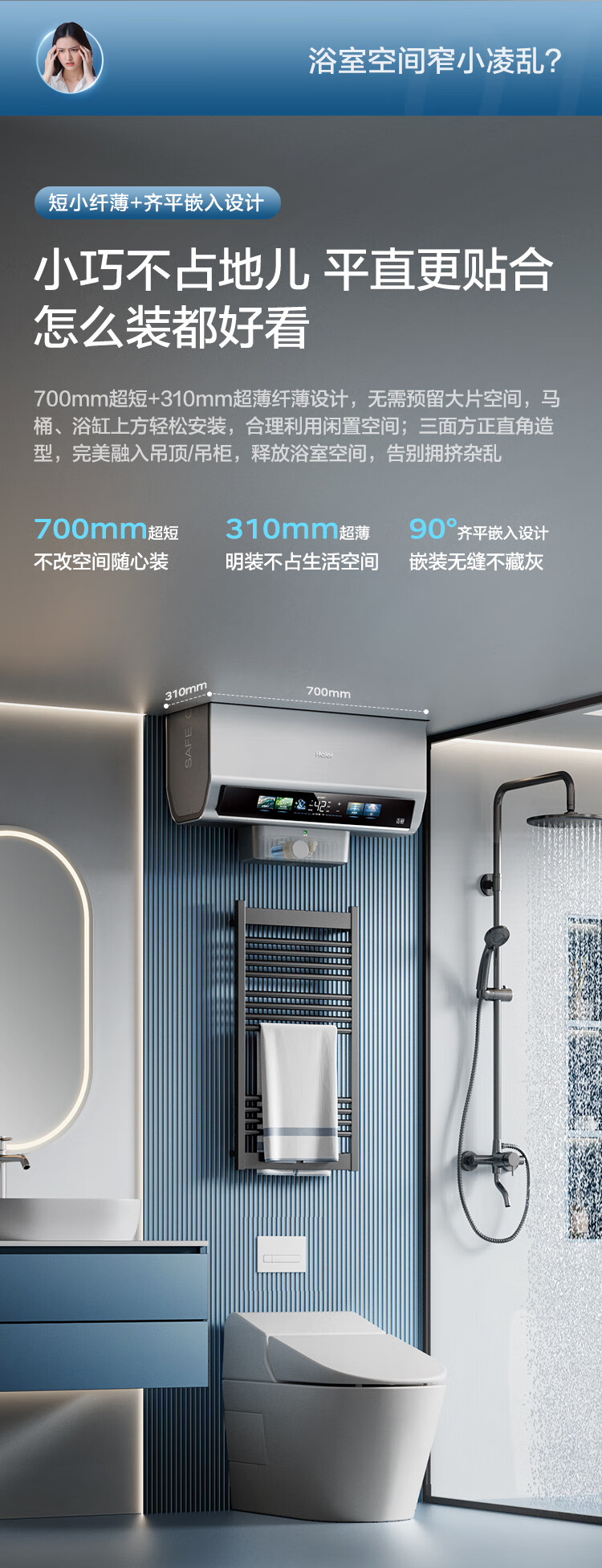 海尔(Haier)双胆扁桶电热水器60升麦浪BK5PRO 富锶小蓝瓶净肤洗 免清洗 双3300W速热节能一级能效 EC6003HD-BK5PROKAU1/台